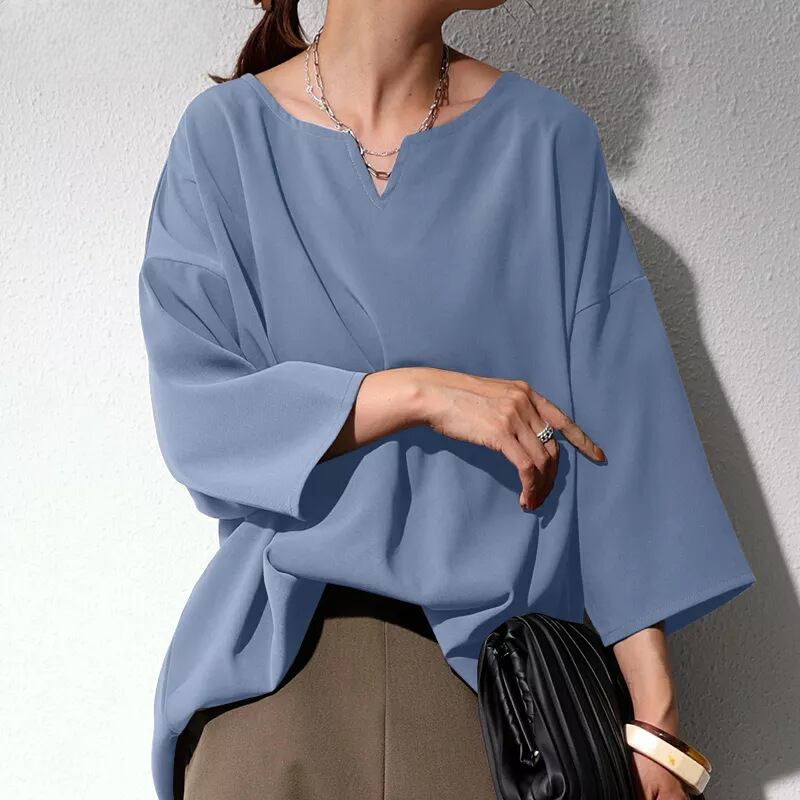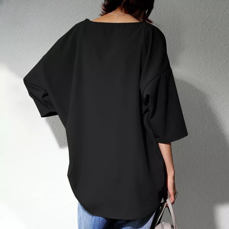 レディース トップス シャツ ブラウス プルオーバー 7分袖 Vネック キーネック オーバーサイズ フェミニン かわいい 大人可愛い きれいめ シンプル 上品 おしゃれ クール エレガント 抜け感 ラブリー キュート ベーシック アメリカン プレッピー ロマンティック ナチュラル 無地 春 秋 お出かけ イベント リゾート 旅行 アースカラー 重ね着 普段使い 着回し S M L XL 2XL 3XL 4XL 5XL 小さいサイズ 大きいサイズ ビッグ ゆったり ゆる 黒 ブラック ブルー 緑 グリーン