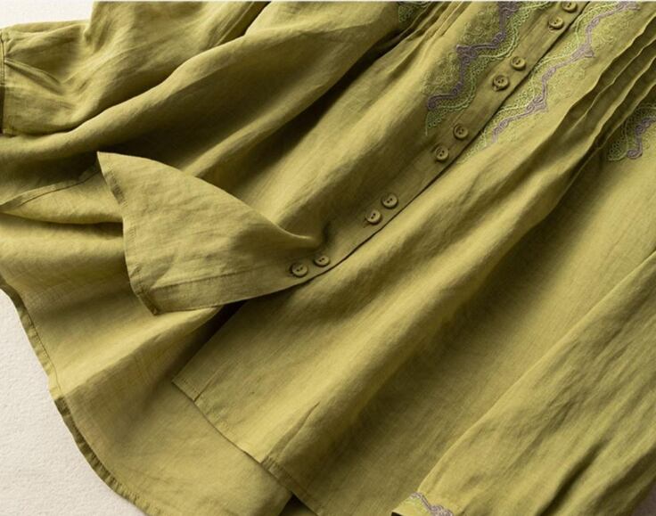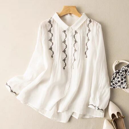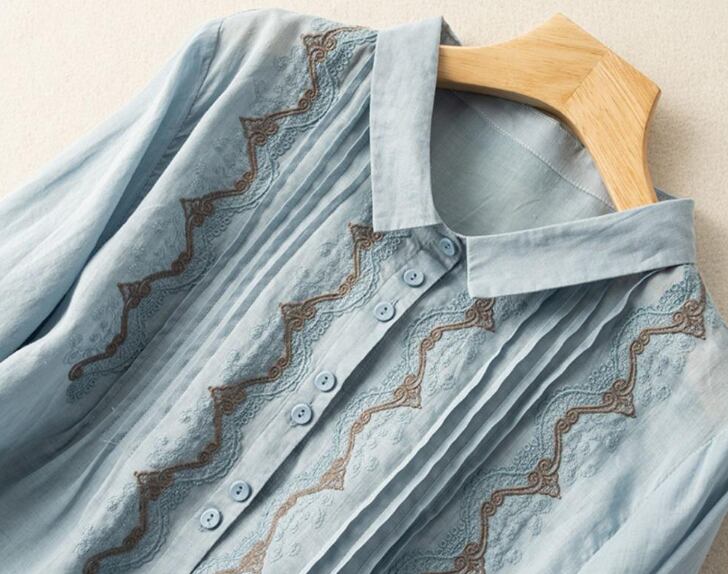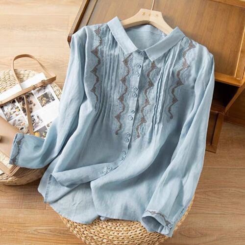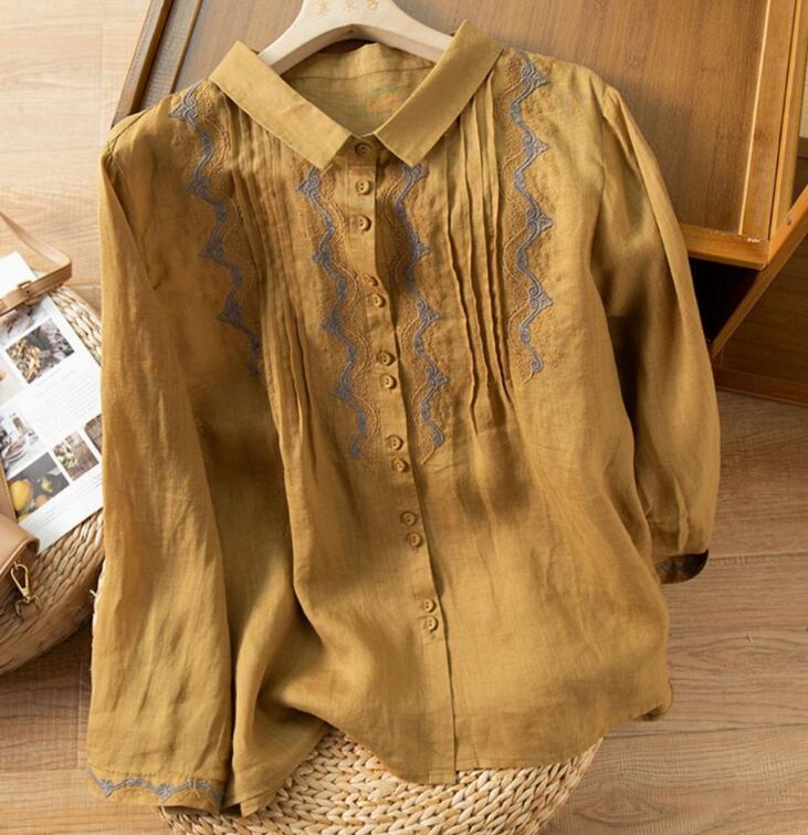 レディース シャツ ブラウス 前開き 普通丈 長袖 袖ボタン 襟付き 角襟 ワイド 刺繍 薄手 リネン カジュアル おしゃれ レトロ アジアン こなれ感 ラフ 個性的 主役級 存在感 都会的 ベーシック ナチュラル 無地 春 夏 ロングシーズン デート お出かけ 旅行 女子会 休日 ショッピング カフェ 普段使い 着回し モテ 清楚 トレンド 流行 インスタ映え 定番 M L XL 2XL ゆったり サイズ展開 ホワイト イエロー ブルー グリーン ベーシックカラー 大人カラー カラバリ くすみカラー