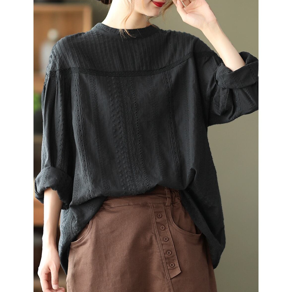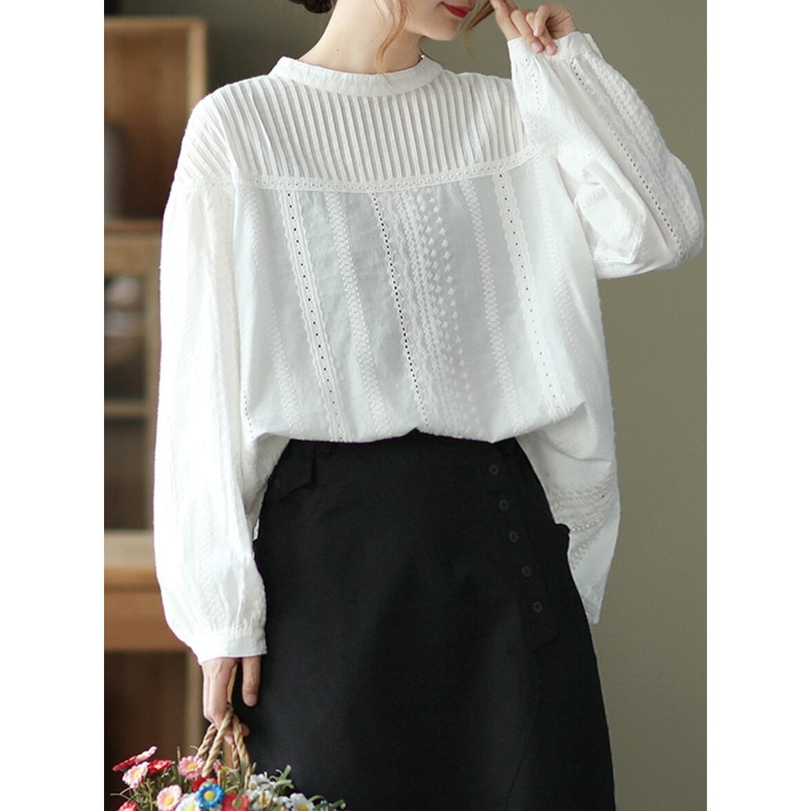 カットワークブラウス トップス ブラウス シャツ ノーカラーブラウス シャツブラウス ワントーン刺繍ブラウス ラウンドネック ノーカラー 襟無し 半袖 長袖 シアー シフォン 無地 刺繍 プリーツ レディース かわいい 大人可愛い おしゃれ ガーリー エレガント 主役級 存在感 キュート きれいめ 上品 シンプル カジュアル クラシカル こなれ感 マニッシュ レトロ お出かけ ショッピング 休日 通勤 通学 デート 女子会 イベント 旅行 体型カバー ゆったり フェミニン
