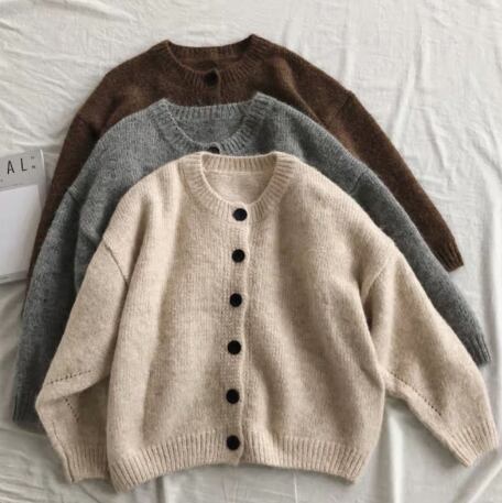 レディース ニット カーディガン アウター 羽織 前開き 普通丈 長袖 ラウンドネック 襟なし フェミニン ボタン ニット 大人可愛い きれいめ シンプル カジュアル 上品 おしゃれ こなれ感 ラフ モダン 主役級 存在感 都会的 ベーシック ナチュラル 無地 秋 冬 ロングシーズン デート お出かけ 女子会 休日 ショッピング カフェ 暖かい 普段使い 着回し モテ 清楚 トレンド 流行 インスタ映え 定番 S M L サイズ展開 ブラウン グレー アプリコット ベーシックカラー 大人カラー カラバリ