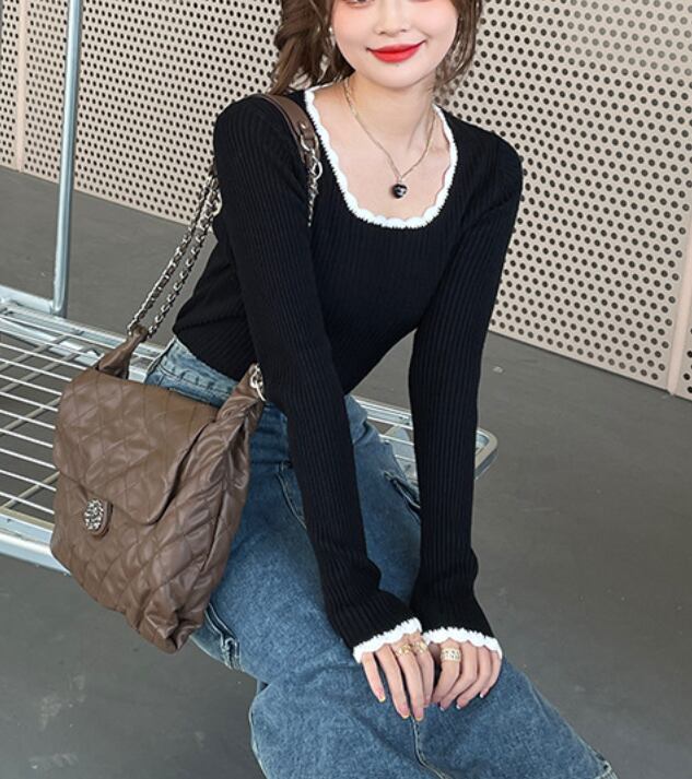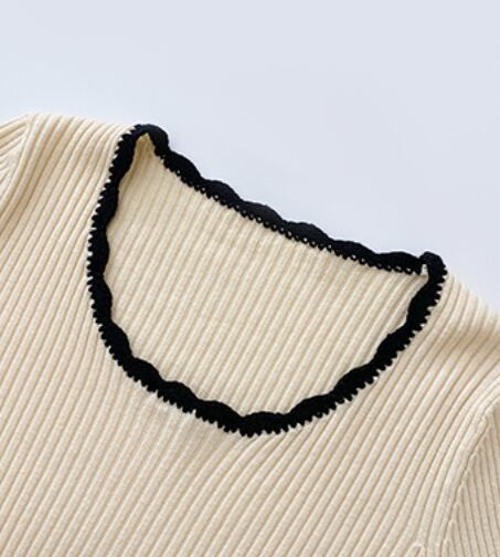 シンプルながらもおしゃれなデザインが特徴なニットカットソーです。フリル袖デザインがフェミニンさを引き立て、普通丈でさまざまなコーディネートに合わせやすいです。ロングスリーブとラウンドネックの組み合わせで、季節を問わず活躍してくれるアイテムです。タイトなシルエットが美しいラインを演出し、バイカラーがさりげないアクセントに、オフィスやデート、お出かけや旅行にぴったりの一着です!