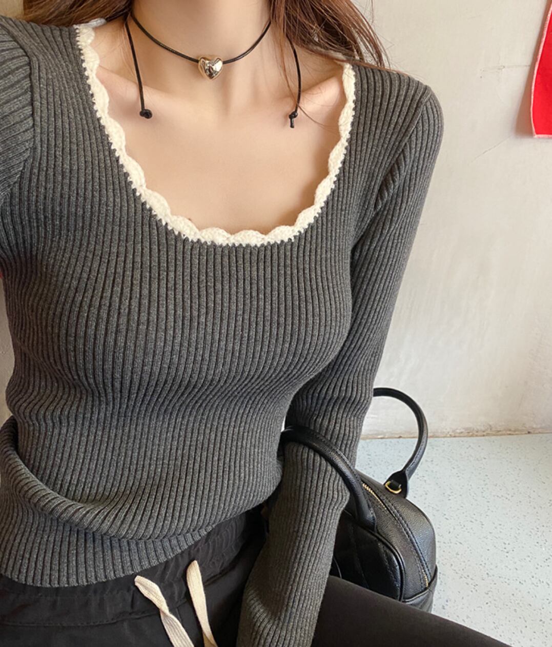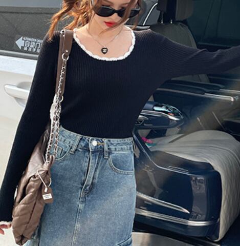 レディース トップス カットソー ニット セーター ショート 普通丈 萌袖 フリル袖 ロングスリーブ ラウンドネック 襟なし フリル袖 タイト スリム 細身 ストレート フェミニン フリル リブ バイカラー 薄手 かわいい 大人可愛い きれいめ おしゃれ ガーリー クール モード系 ラブリー キュート ロマンティック 無地 春 夏 秋 冬 オールシーズン ハロウィン クリスマス オフィス OL 通勤 デート お出かけ 旅行 女子会 コーデ 着回し ワンサイズ ホワイト ブラック カラバリ ダークグレー