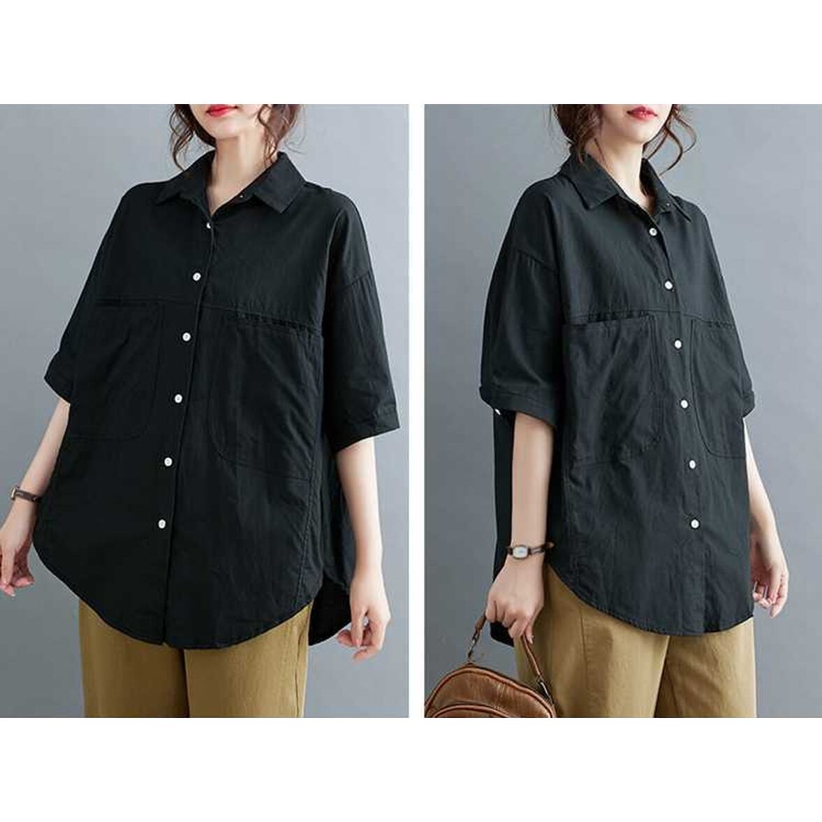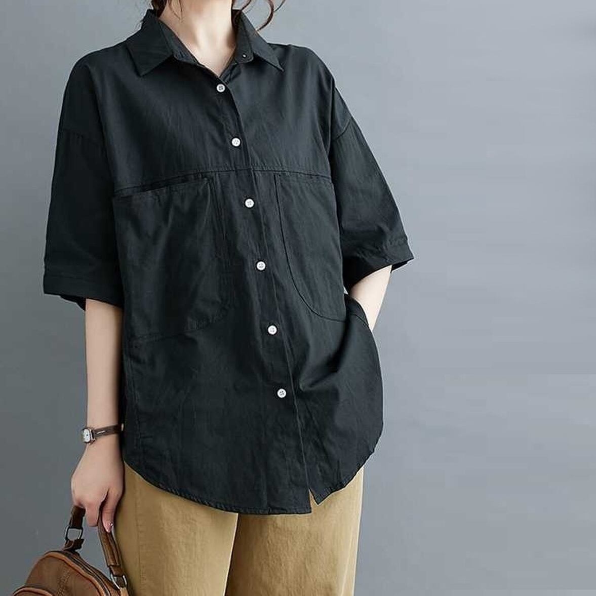襟付きシャツ トップス シャツ ブラウス シャツブラウス 襟付き 半袖 5分袖 ポケット 無地 ドロップショルダー セミワイドシャツ リラックスシャツ レディース かわいい 大人可愛い おしゃれ ガーリー エレガント 主役級 存在感 キュート きれいめ 上品 シンプル カジュアル こなれ感 マニッシュ レトロ お出かけ ショッピング 休日 通勤 通学 デート 女子会 イベント 旅行 体型カバー ゆったり フェミニン アクティブ 万能 普段使い 高見え 鮮度アップ