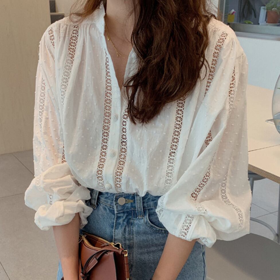 カットワークキーネックシャツ トップス シャツ ブラウス シャツブラウス キーネック Vネック 長袖 バルーンスリーブ カットワーク レース ドット ワントーン シフォンシャツ レディース かわいい 大人可愛い おしゃれ ガーリー エレガント 主役級 存在感 キュート きれいめ 上品 カジュアル クラシカル こなれ感 抜け感 レトロ お出かけ ショッピング 休日 通勤 通学 デート 女子会 イベント 旅行 体型カバー ゆったり フェミニン 高見え 鮮度アップ