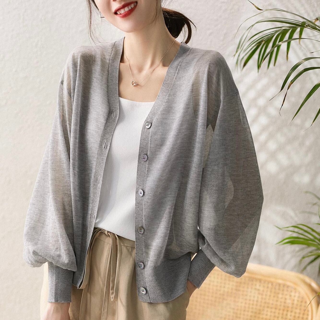 レディース トップス カーディガン 羽織 前開き 長袖 ボリューム袖 バルーン袖 Vネック フェミニン リブ 透け感 シースルー ボタン かわいい 大人可愛い きれいめ シンプル 上品 おしゃれ こなれ感 ガーリー エレガント 抜け感 ラブリー キュート クラシカル ベーシック アクティブ ナチュラル 無地 春 秋 デート お出かけ イベント 旅行 レストラン 休日 重ね着 韓国 オルチャン 楽ちん 普段使い 着回し レイヤード 清楚 トレンド 定番 フリーサイズ 黒 ブラック グレー ブルー グリーン