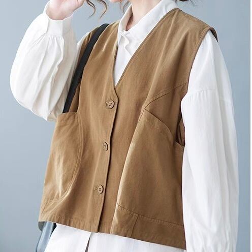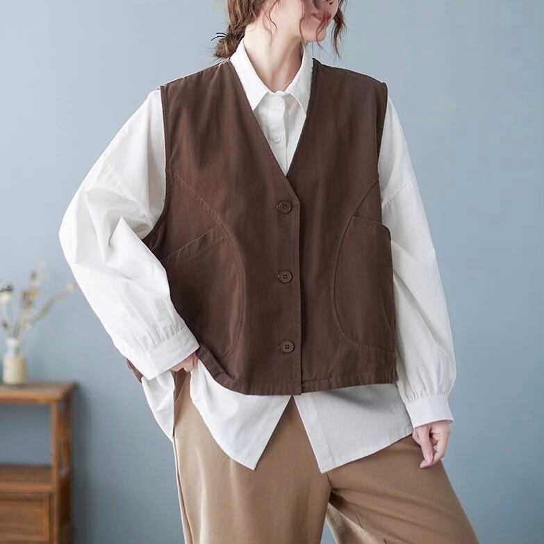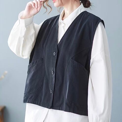 レディース トップス ベスト 前開き ショート 袖なし ノースリーブ Vネック ストリート ポケット ボタン シンプル カジュアル おしゃれ こなれ感 ラフ メンズライク マニッシュ ボーイッシュ 抜け感 クラシカル ベーシック カントリー アクティブ ナチュラル 無地 春 秋 お出かけ イベント 休日 ショッピング カフェ 重ね着 韓国 オルチャン 楽ちん 体型カバー 普段使い 着回し レイヤード 定番 M L XL 2XL 大きいサイズ ビッグ ゆったり ゆる 黒 ブラック 茶色 ブラウン ベージュ
