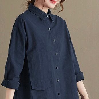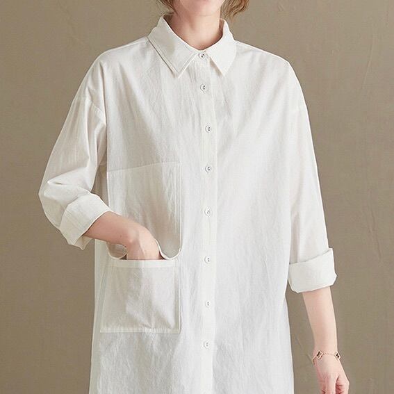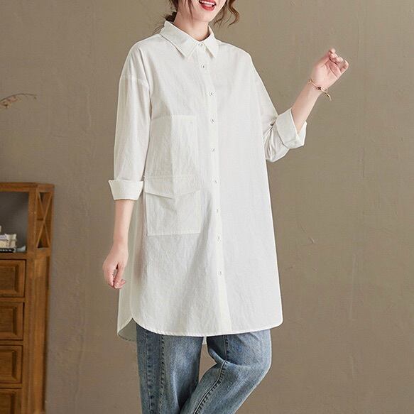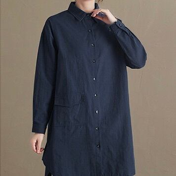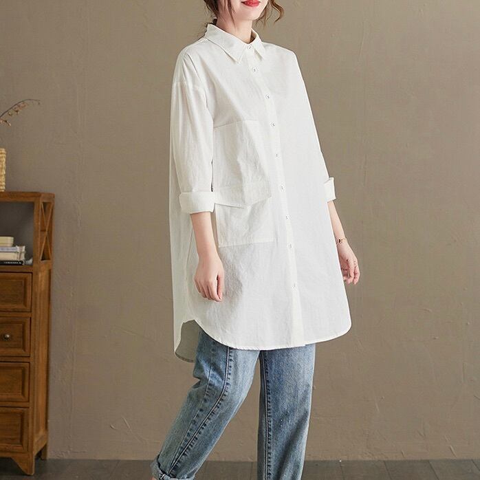 レディース トップス シャツ ブラウス 前開き ロング 長袖 Vネック 襟付き 角襟 フェミニン ストリート ポケット きれいめ シンプル カジュアル 上品 おしゃれ かっこいい こなれ感 ラフ ガーリー ルーズ クール 抜け感 ヴィンテージ ベーシック アクティブ ナチュラル 無地 春 秋 お出かけ 休日 ショッピング お花見 重ね着 韓国 オルチャン 体型カバー 普段使い 着回し レイヤード 定番 L XL 2XL 大きいサイズ ビッグ ゆったり ゆる 白 ホワイト ブルー ネイビー ベーシックカラー