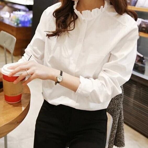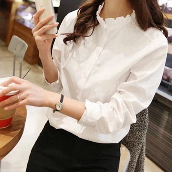 レディース トップス シャツ ブラウス 長袖 スタンドカラー フリルカラー フェミニン ボタン ヴィンテージ かわいい 大人可愛い きれいめ シンプル 上品 おしゃれ ガーリー エレガント 抜け感 ラブリー キュート 都会的 クラシカル ベーシック ロマンティック ナチュラル 無地 春 秋 オフィス OL 通勤 お出かけ イベント レストラン 休日 発表会 重ね着 韓国 オルチャン 普段使い 着回し レイヤード トレンド 流行 インスタ映え S M L XL 小さいサイズ 大きいサイズ 白 ホワイト