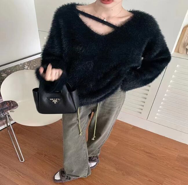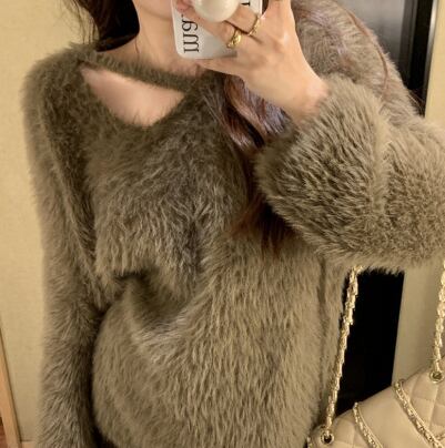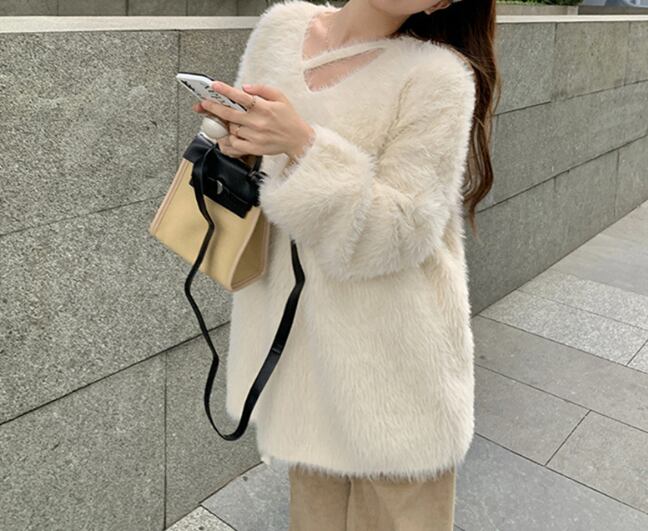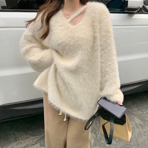 ふわふわ&もこもこの素材感が魅力のVネックプルオーバー。