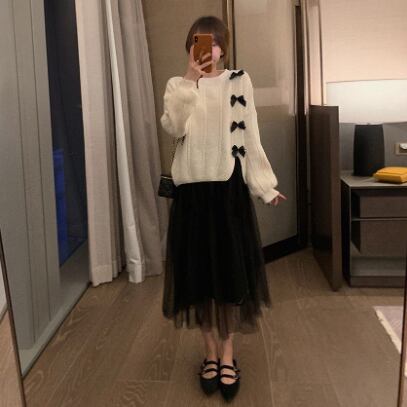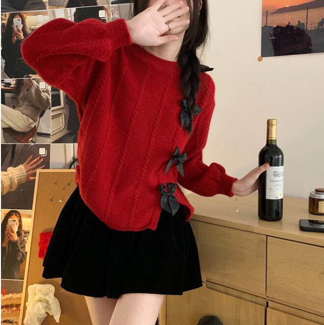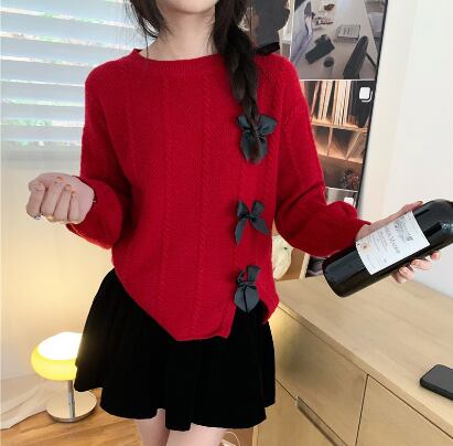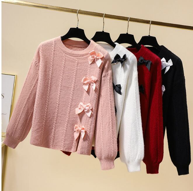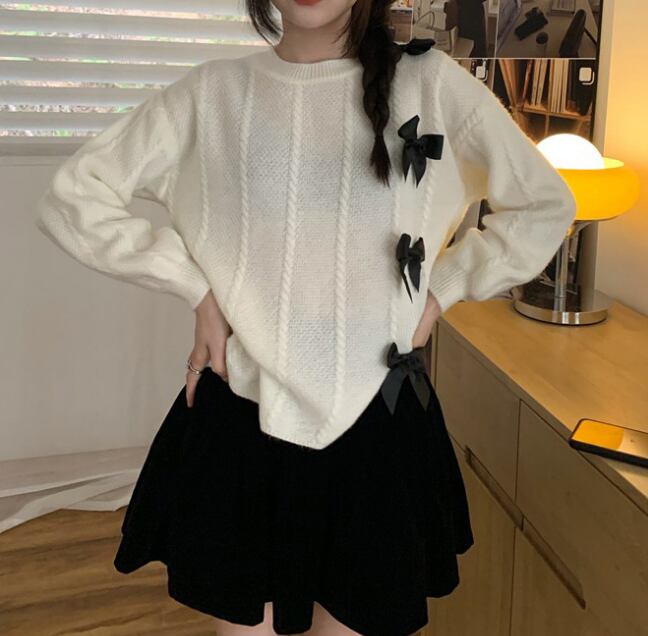 大人可愛いリボンデザインがアクセントの、高見えニット。