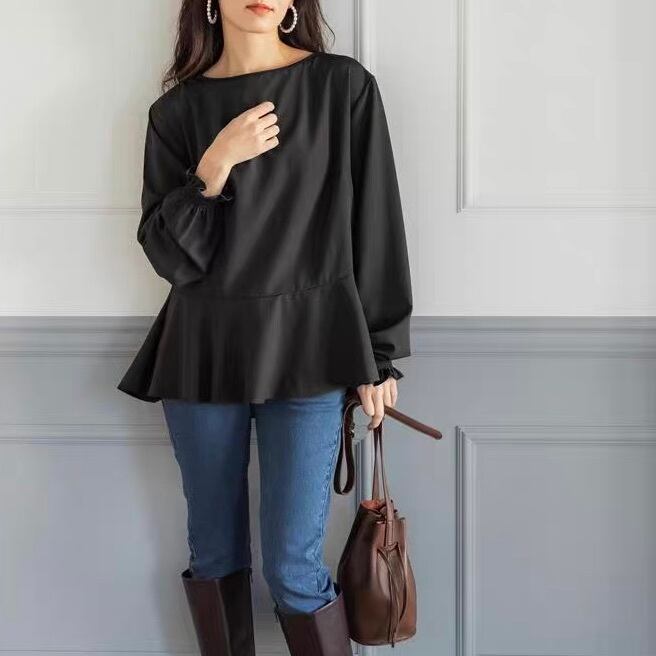 フリル袖×ペプラムが可愛さもスタイルアップも両立。
