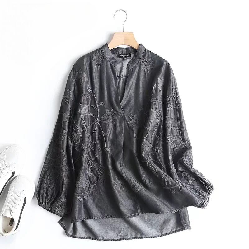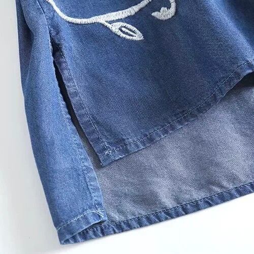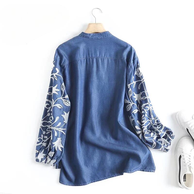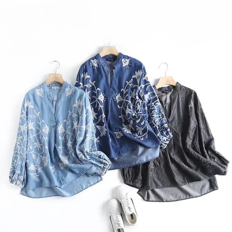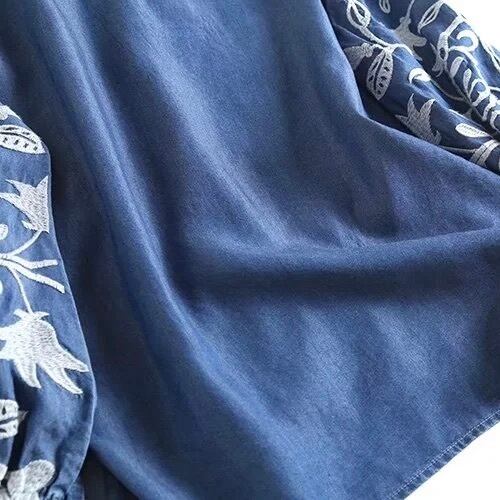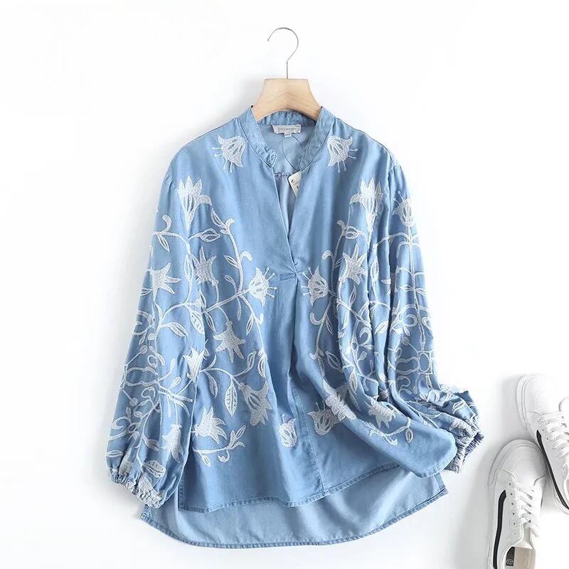 レディース トップス シャツ プルオーバー 長袖 キーネック セミフレア フェミニン 刺繍 デニム ブルーデニム カラーデニム かわいい 大人可愛い きれいめ シンプル カジュアル 上品 おしゃれ かっこいい レトロ アジアン エスニック エキゾチック こなれ感 ラフ ガーリー クール ヴィンテージ キュート カントリー アクティブ 花柄 フラワー リーフ ボタニカル 春 秋 お出かけ 休日 フェス 韓国 オルチャン 普段使い 着回し トレンド 流行 インスタ映え M L 黒 ブラック 水色 ブルー 青色