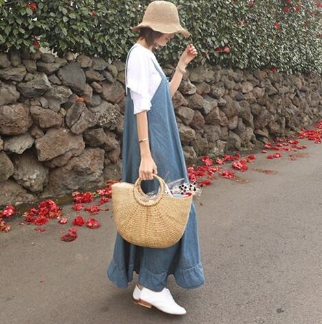 ブルーデニム×ジャンパースカートで大人可愛いが叶う一枚。
