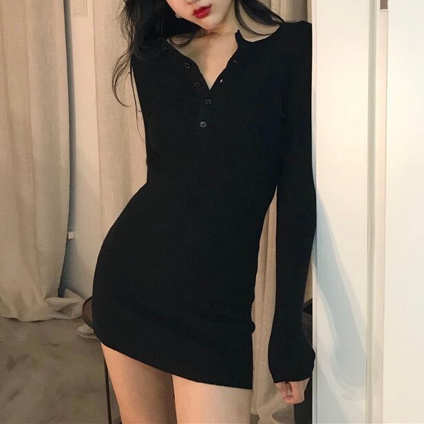 レディース ワンピース ニットワンピ ショート 長袖 ヘンリーネック タイト スリム 細身 スマート フェミニン ストリート リブニット かわいい 大人可愛い きれいめ シンプル カジュアル おしゃれ かっこいい こなれ感 ガーリー クール エレガント 抜け感 ラブリー キュート ベーシック アクティブ セクシー 無地 秋 冬 デート お出かけ パーティー イベント 女子会 休日 韓国 オルチャン 美脚 脚長 普段使い 着回し トレンド 流行 インスタ映え 定番 フリーサイズ 黒 ブラック 緑 グリーン
