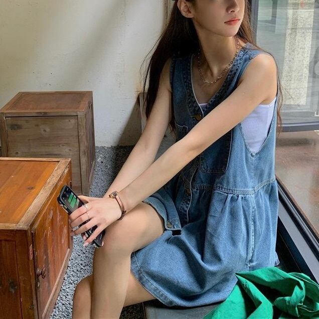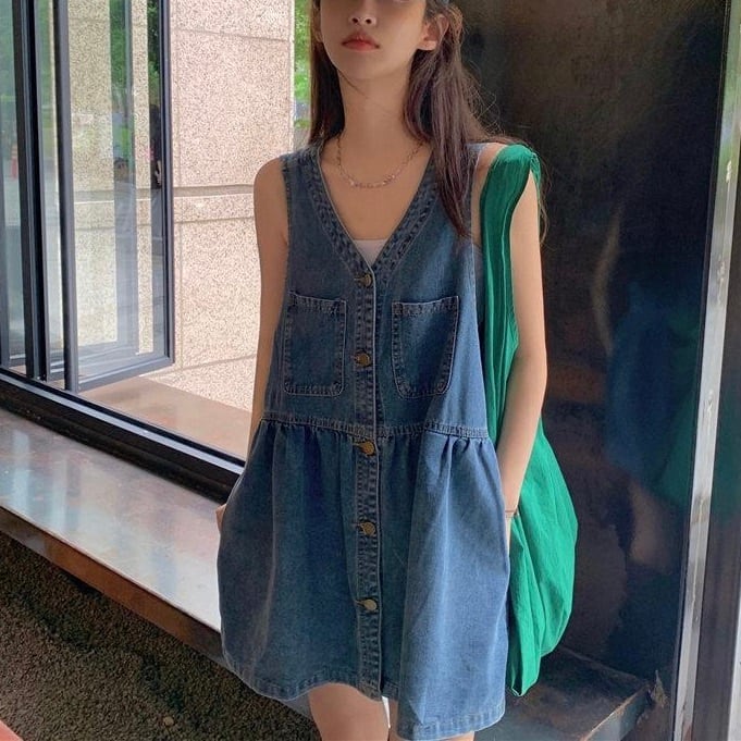 レディース ワンピース フレア デニム ミニ ショート 袖なし ノースリーブ Vネック フェミニン ストリート ウエストマーク ハイウエスト ボタン ヴィンテージ アメカジ ブルーデニム かわいい 大人可愛い シンプル カジュアル おしゃれ こなれ感 ラフ メンズライク マニッシュ ボーイッシュ スポーティー クール 抜け感 ラブリー キュート クラシカル ベーシック アメリカン カントリー アクティブ ナチュラル 無地 春 夏 重ね着 韓国 オルチャン 楽ちん 普段使い レイヤード S M L ブルー