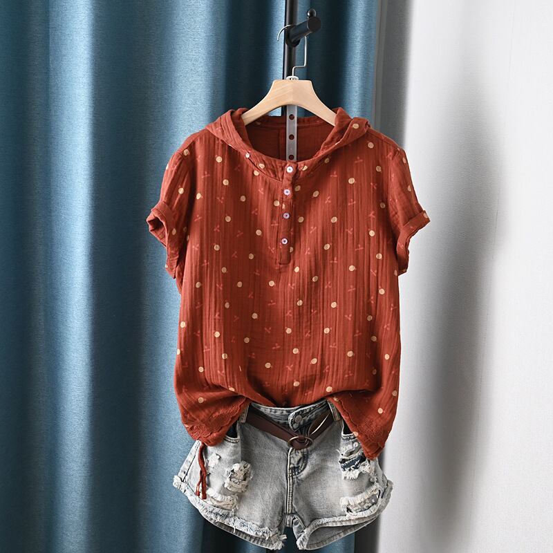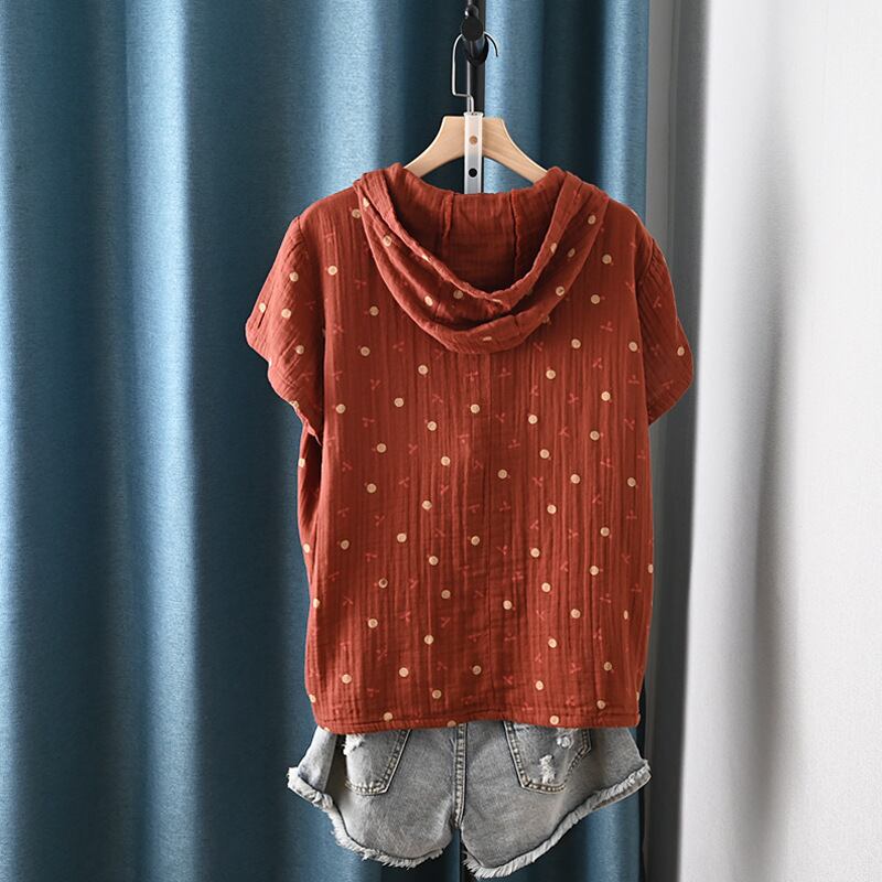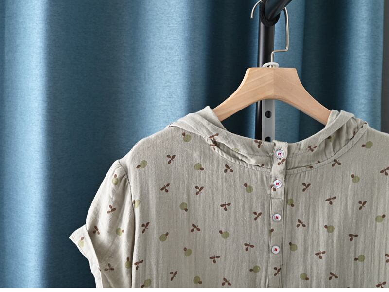 レディース トップス プルオーバー フード付きトップス ルーズフィット 半袖 ドロップショルダー ラウンドネック フード フェミニン ボタン 綿 コットン かわいい 大人可愛い シンプル カジュアル おしゃれ レトロ こなれ感 ラフ ガーリー 主役級 存在感 抜け感 キュート ベーシック ナチュラル 花柄 フラワー 夏 デート お出かけ 旅行 女子会 休日 ショッピング カフェ 普段使い 着回し 定番 フリーサイズ ワンサイズ ホワイト グリーン ネイビー ライトアーミーグリーン レッド