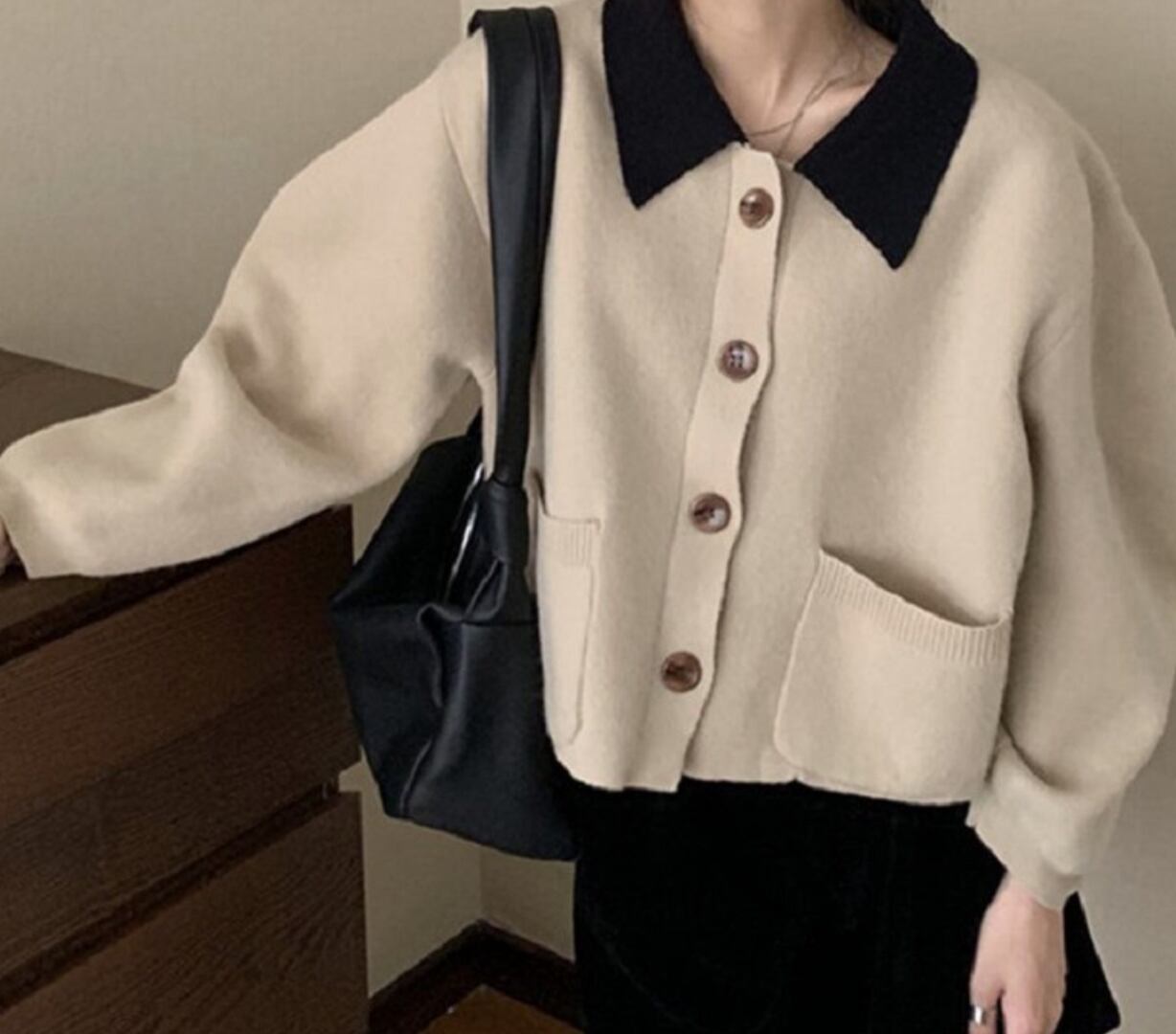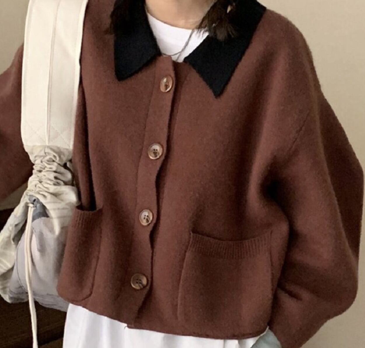 大人可愛い雰囲気漂う、レディースニットカーディガンです。普通丈にドルマンスリーブが施され、ゆったりとしたシルエットが魅力的。襟付きのデザインが上品さを引き立て、セミフレアの裾はさりげない動きを演出します。シンプルながらもインパクトがあり、バイカラーのカラーバリエーションと合わせて、幅広いコーディネートを楽しめます。