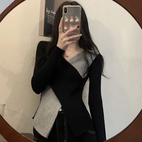 レディース トップス ニット プルオーバー 丈長 長袖 Vネック 襟なし タイト スリム 細身 フェミニン 高見え きれいめ シンプル カジュアル 上品 おしゃれ こなれ感 個性的 クール モード系 エレガント モダン 主役級 存在感 都会的 ベーシック ナチュラル 無地 春 秋 デート お出かけ 女子会 休日 ショッピング カフェ 普段使い 着回し モテ 清楚 トレンド 流行 インスタ映え 定番 フリーサイズ ワンサイズ ホワイト グレー アプリコット ベーシックカラー 大人カラー カラバリ