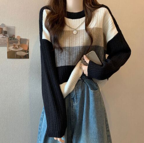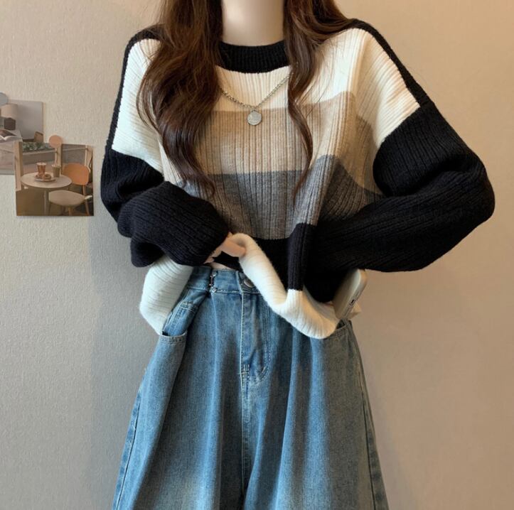 レディース トップス ニット プルオーバー 普通丈 長袖 クルーネック 襟なし ワイド フェミニン 高見え きれいめ シンプル カジュアル 上品 おしゃれ こなれ感 ラフ クール モード系 エレガント モダン 主役級 存在感 都会的 ベーシック ナチュラル ボーダー 秋 冬 デート お出かけ 女子会 休日 ショッピング カフェ 普段使い 着回し モテ 清楚 トレンド 流行 インスタ映え 定番 ゆったり フリーサイズ ワンサイズ ブラック ブラウン グレー ベーシックカラー 大人カラー カラバリ