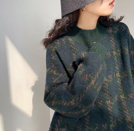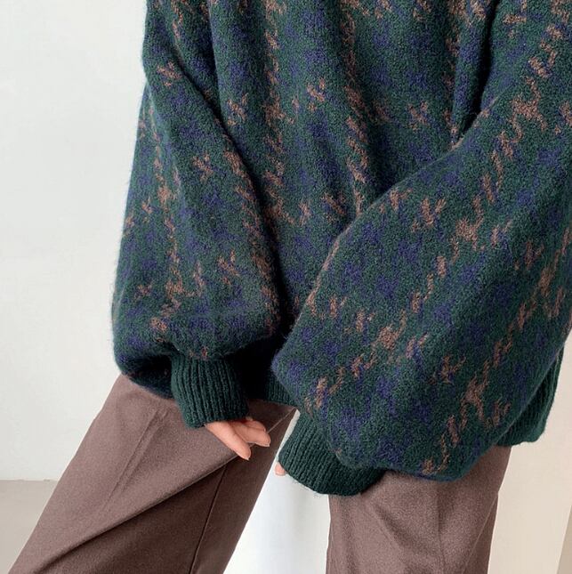 レディース トップス ニット セーター プルオーバー 丈長 長袖 クルーネック 襟なし ワイド オーバーサイズ ストリート 高見え 厚手 カジュアル おしゃれ レトロ こなれ感 ラフ ルーズ 個性的 モダン 主役級 存在感 都会的 ベーシック ナチュラル 千鳥格子 秋 冬 デート お出かけ 女子会 ショッピング カフェ 体型カバー 普段使い 着回し モテ トレンド 流行 インスタ映え 定番 S M L XL 2XL ゆったり サイズ展開 レッド グリーン ベーシックカラー 大人カラー カラバリ