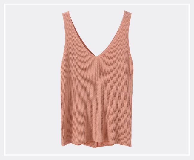 ノースリーブのVネックカットソー。