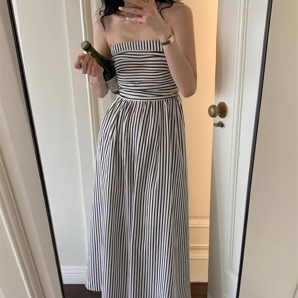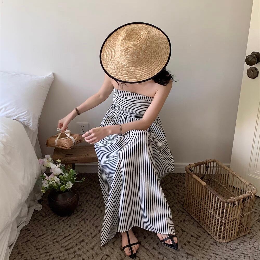レディース ワンピース ロング マキシ 袖なし ノースリーブ オフショルダー フレア Aライン フェミニン ウエストマーク ハイウエスト かわいい 大人可愛い きれいめ シンプル カジュアル おしゃれ こなれ感 ラフ ガーリー ルーズ ヴィンテージ ラブリー キュート アクティブ ナチュラル マリン リラックス ボーダー ストライプ 夏 デート お出かけ イベント リゾート 旅行 海 休日 バカンス 韓国 オルチャン 楽ちん 普段使い 着回し トレンド 流行 S M 白 ホワイト バイカラー モノトーン