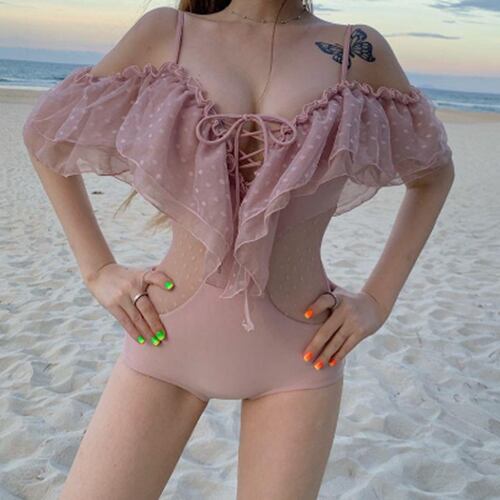 水着 レディース ワンピース オフショル 二の腕カバー レース フリル メッシュ かわいい 大人可愛い きれいめ シンプル カジュアル ナチュラル ゴージャス 華やか 大人っぽい おしゃれ お洒落 主役級 存在感 ラブリー キュート ガーリー 個性的 エキゾチック セクシー トレンド フェミニン ドット 水玉 無地 リゾート 旅行 温泉 プール 夏 海 美脚 脚長 着痩せ スタイルアップ 韓国 高見え 格上げ モテ 背中見せ インスタ映え こなれ感 M L XL ピンク くすみ