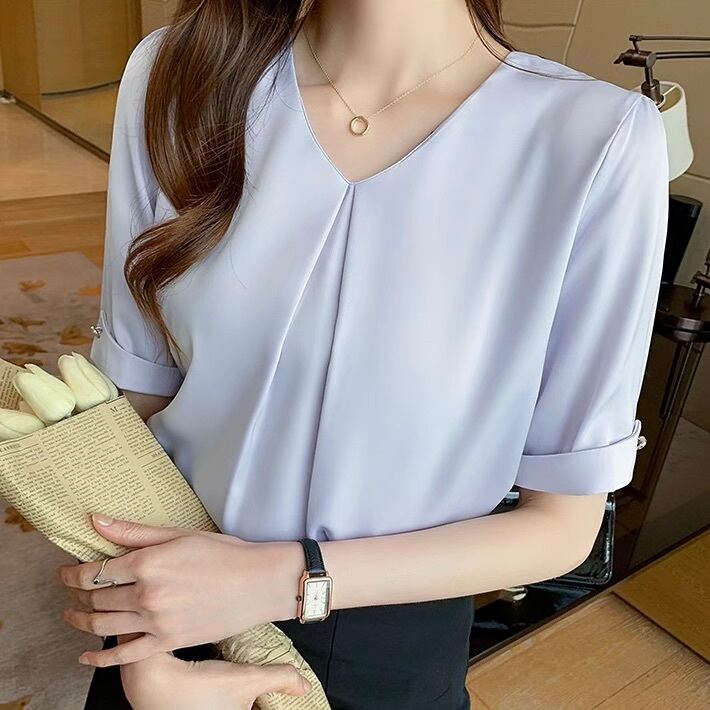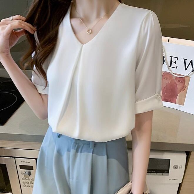 レディース トップス シャツ ブラウス 半袖 Uネック ラウンドネック フェミニン シフォン コンサバ ボタン きれいめ シンプル 上品 おしゃれ こなれ感 ガーリー クール エレガント モダン フォーマル 抜け感 かっちり クラシカル ベーシック ナチュラル 無地 夏 オフィス ビジネス OL 通勤 お出かけ 重ね着 韓国 オルチャン 楽ちん 普段使い レイヤード 清楚 トレンド S M L XL 2XL 小さいサイズ 大きいサイズ ビッグ ゆったり ゆる 白 ホワイト 水色 ブルー ベーシックカラー