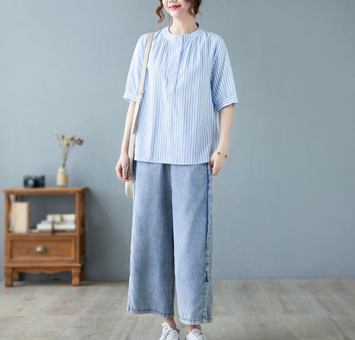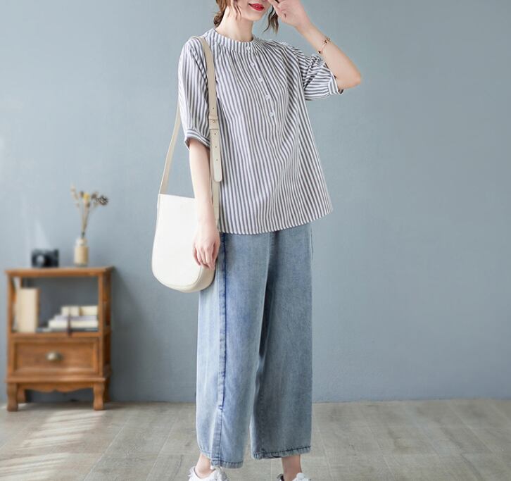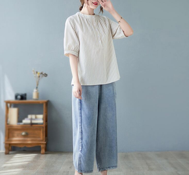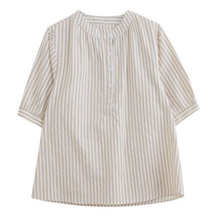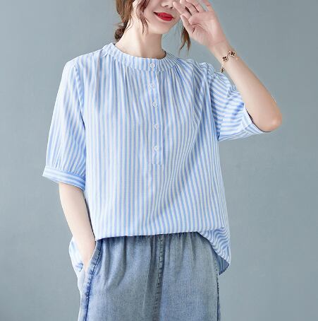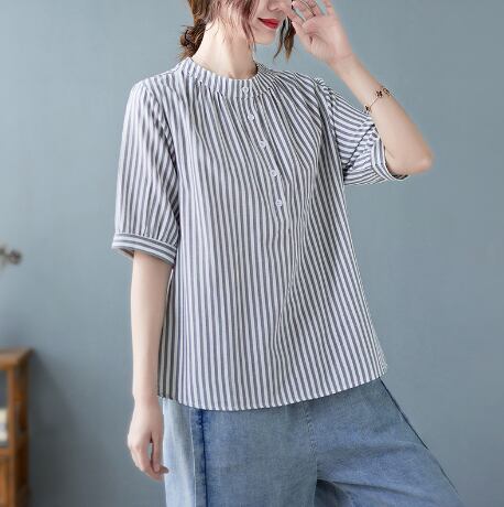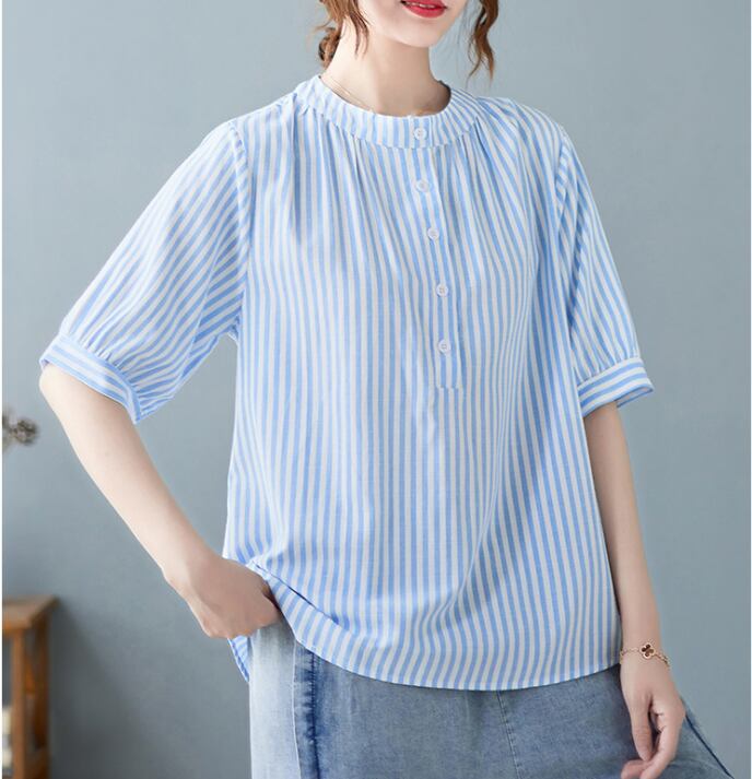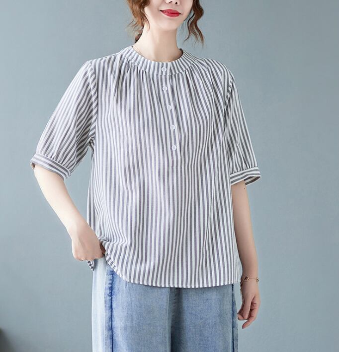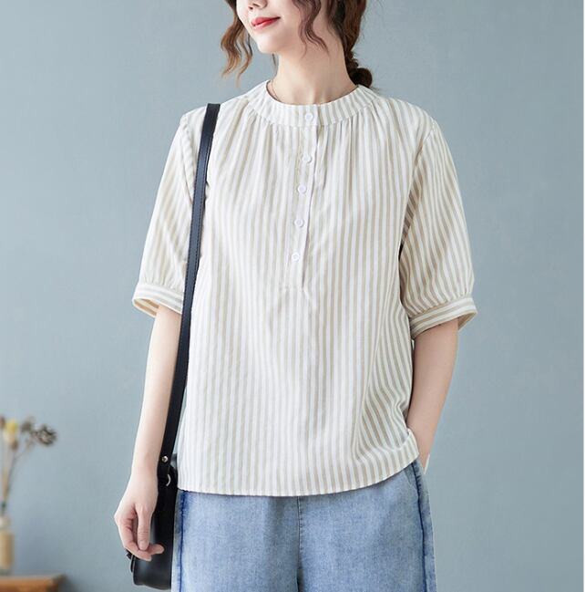 レディース トップス シャツ 丈長 半袖 ヘンリーネック 襟なし ワイド ボタン 高見え 薄手 大人可愛い きれいめ カジュアル おしゃれ こなれ感 ラフ 個性的 クール モダン 主役級 存在感 都会的 ベーシック ナチュラル ストライプ 春 夏 ロングシーズン デート お出かけ 女子会 休日 ショッピング カフェ 普段使い 着回し モテ 清楚 トレンド 流行 インスタ映え 定番 M L XL 2XL 3XL ゆったり サイズ展開 グレー カーキ ブルー ベーシックカラー 大人カラー カラバリ