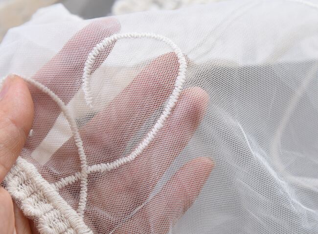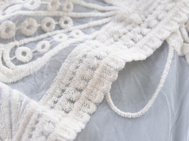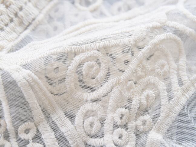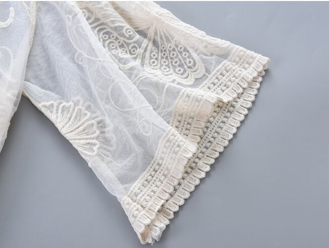 繊細なレースが上品に映える、7分袖の薄手カーディガン。