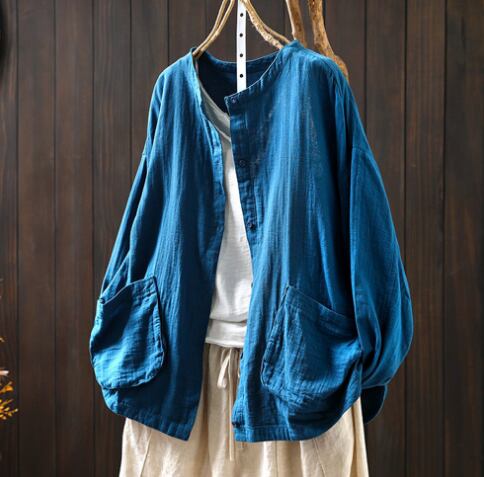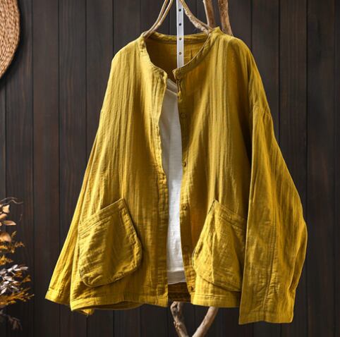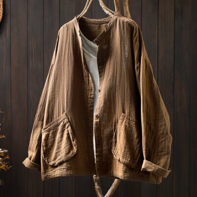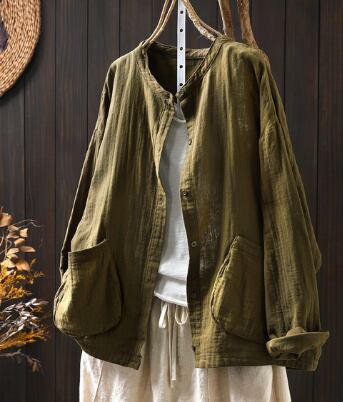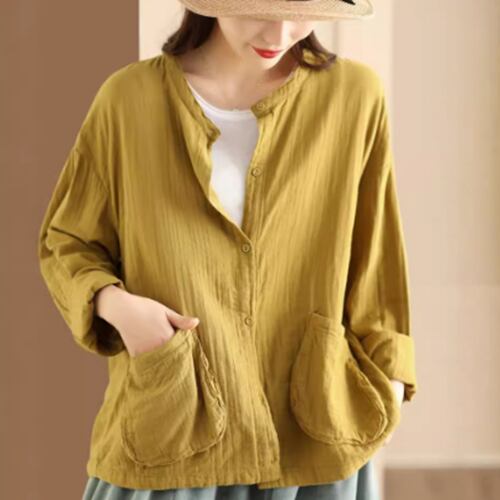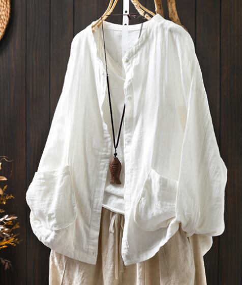 レディース トップス シャツ 普通丈 長袖 襟なし ワイド ポケット 前開き ボタン きれいめ シンプル カジュアル 上品 おしゃれ レトロ アジアン こなれ感 ラフ 個性的 クール モダン 主役級 存在感 都会的 ベーシック ナチュラル 無地 春 秋 デート お出かけ 女子会 休日 ショッピング カフェ モテ 清楚 トレンド 流行 インスタ映え 定番 ゆったり フリーサイズ ワンサイズ ホワイト ブラック ブラウン イエロー カーキ ブルー グリーン ベーシックカラー 大人カラー アーミーグリーン