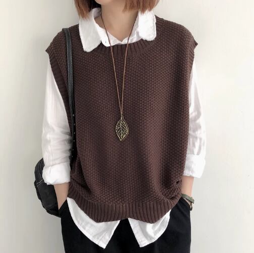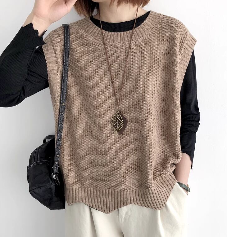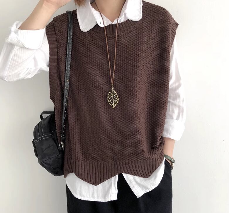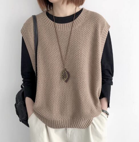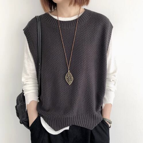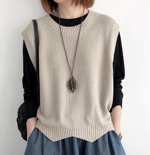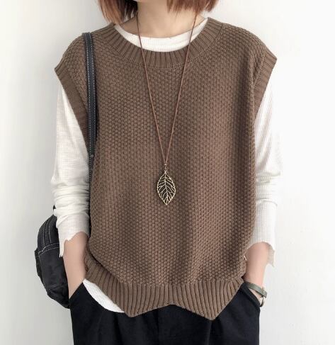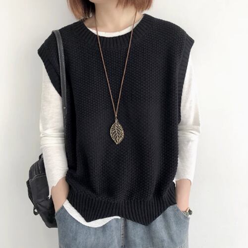 レディース トップス ニット プルオーバー ベスト 普通丈 袖なし ノースリーブ クルーネック 襟なし ワイド きれいめ シンプル カジュアル 上品 おしゃれ こなれ感 ラフ モダン 主役級 存在感 都会的 ベーシック ナチュラル 無地 春 秋 デート お出かけ 女子会 休日 ショッピング カフェ モテ 清楚 トレンド 流行 インスタ映え 定番 M L ゆったり サイズ展開 ブラック ブラウン ダークグレー カーキ レッド アプリコット ネイビー ベーシックカラー 大人カラー ダークブラウン
