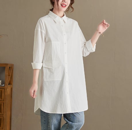 レディース トップス シャツ ブラウス 丈長 長袖 襟付き スタンドカラー ワイド 前開き ボタン 高見え きれいめ シンプル カジュアル 上品 おしゃれ こなれ感 ラフ クール モダン 主役級 存在感 都会的 ベーシック ナチュラル 無地 春 秋 デート お出かけ 公園 女子会 休日 ショッピング カフェ コーデ 楽ちん 体型カバー 普段使い 着回し モテ 清楚 トレンド 流行 インスタ映え 定番 M L XL 2XL ゆったり サイズ展開 オフホワイト ネイビー ベーシックカラー 大人カラー カラバリ