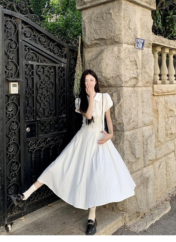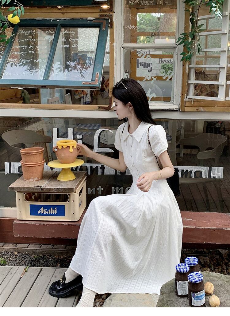 レディース ワンピース ロングスカート ロング 半袖 襟ありドレス Aライン フリル 編み上げ 透け感 伸縮性 ボタン かわいい 大人可愛い きれいめ シンプル カジュアル 上品 おしゃれ かっこいい アジアン エスニック エキゾチック 個性的 クール モダン 無地 春 夏 秋 学生 学校 通学 デート お出かけ お泊まり パーティー イベント リゾート 旅行 海 レストラン ビーチ 女子会 休日 バカンス ガーデン コンサート コンパ 韓国 オルチャン モテ S M L XL 2XL ホワイト