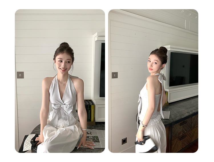 レディース トップス 袖なし ノースリーブ ホルターネック スリム リボン かわいい ホテル 大人可愛い きれいめ シンプル カジュアル 上品 おしゃれ かっこいい アジアン エスニック エキゾチック 個性的 クール モダン ストライプ 春 夏 秋 オフィス ビジネス OL 通勤 学生 学校 通学 デート お出かけ お泊まり パーティー イベント リゾート 旅行 海 レストラン ビーチ 女子会 休日 バカンス ガーデン コンサート コンパ 韓国 オルチャン モテ インスタ映え S M L XL