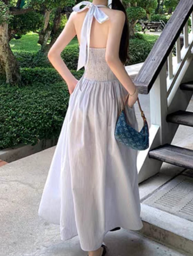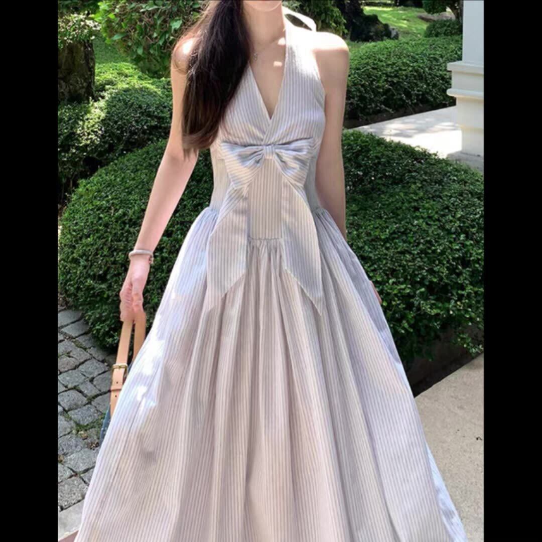 レディース ワンピース ロングスカート 袖なし ノースリーブ ホルターネック スリム リボン かわいい 大人可愛い きれいめ シンプル カジュアル 上品 おしゃれ かっこいい アジアン エスニック エキゾチック 個性的 クール モダン ストライプ 春 夏 秋 オフィス ビジネス OL 通勤 学生 学校 通学 デート お出かけ お泊まり パーティー イベント リゾート 旅行 海 レストラン ビーチ 女子会 休日 バカンス ガーデン コンサート コンパ 韓国 オルチャン モテ インスタ映え S M L