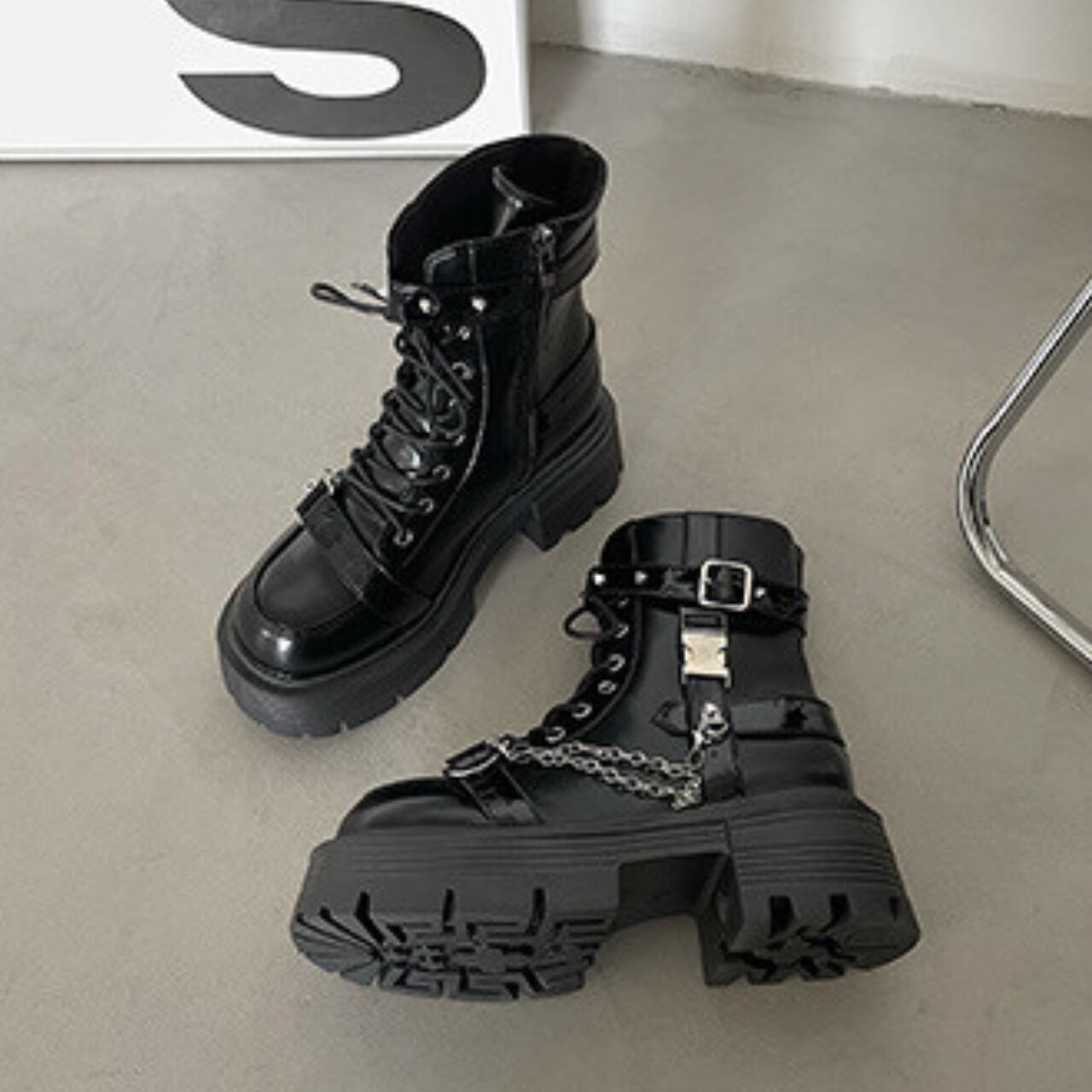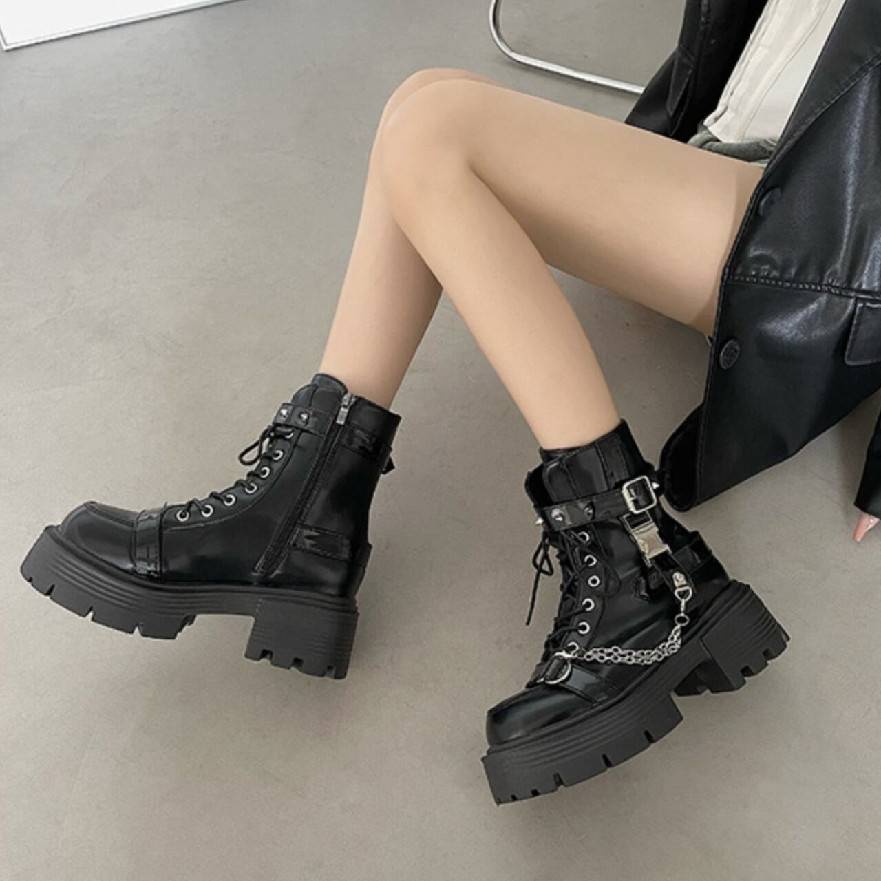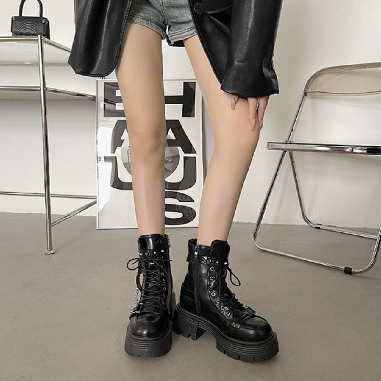 この「レディース ブーツ 5cm チャンキーヒール 厚底 ストラップ」は、通学からデート、休日のお出かけまで幅広いシーンで活躍する大人可愛いデザインが魅力です!厚底5cmのチャンキーヒールは安定感を与えつつ、ストラップのディテールがスタイリッシュな印象を演出します。シンプルな無地デザインは、カジュアルからきれいめスタイルまで自在にコーディネート可能です。モダンながらもレトロな雰囲気を楽しめる一足で、普段使いでもおしゃれに決まります!