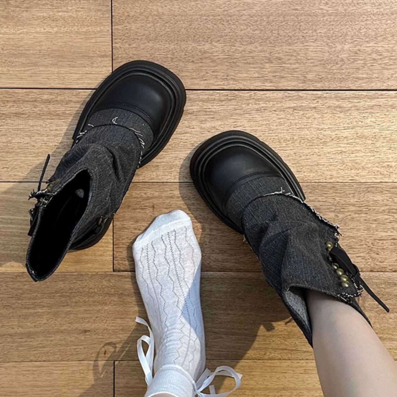 「レディース ブーツ マーティンブーツ ジーンズブーツ ミディアムヒール」は、あなたの日常に華を添えるおしゃれな一足です!デニム素材を使用したこのブーツは、カジュアルからきれいめまで幅広いスタイルにマッチし、上品さと可愛さを兼ね備えています。春や秋のデート、お出かけ、さらにはアウトドアやイベントシーンでも大活躍します!ミディアムヒールが、あなたのスタイルを格上げして、主役級の存在感を発揮します。
