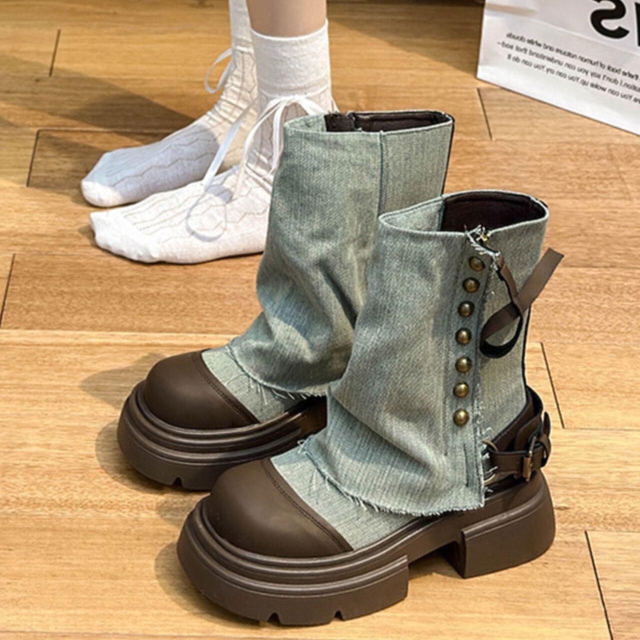 レディース ブーツ マーティンブーツ ジーンズブーツ ミディアムヒール デニム 布 かわいい 大人可愛い きれいめ カジュアル 上品 おしゃれ かっこいい レトロ エレガント ガーリー マニッシュ ボーイッシュ ラフ ルーズ クール 主役級 アジアン エスニック 春 秋 無地 デート お出かけ アウトドア イベント リゾート 旅行 海外 デイリー 普段使い 韓国 コーデ スタイル 格上げ モテ 22.5cm 23.0cm 23.5cm 24.0cm 24.5cm 25.0cm ブラック ブルー グリーン