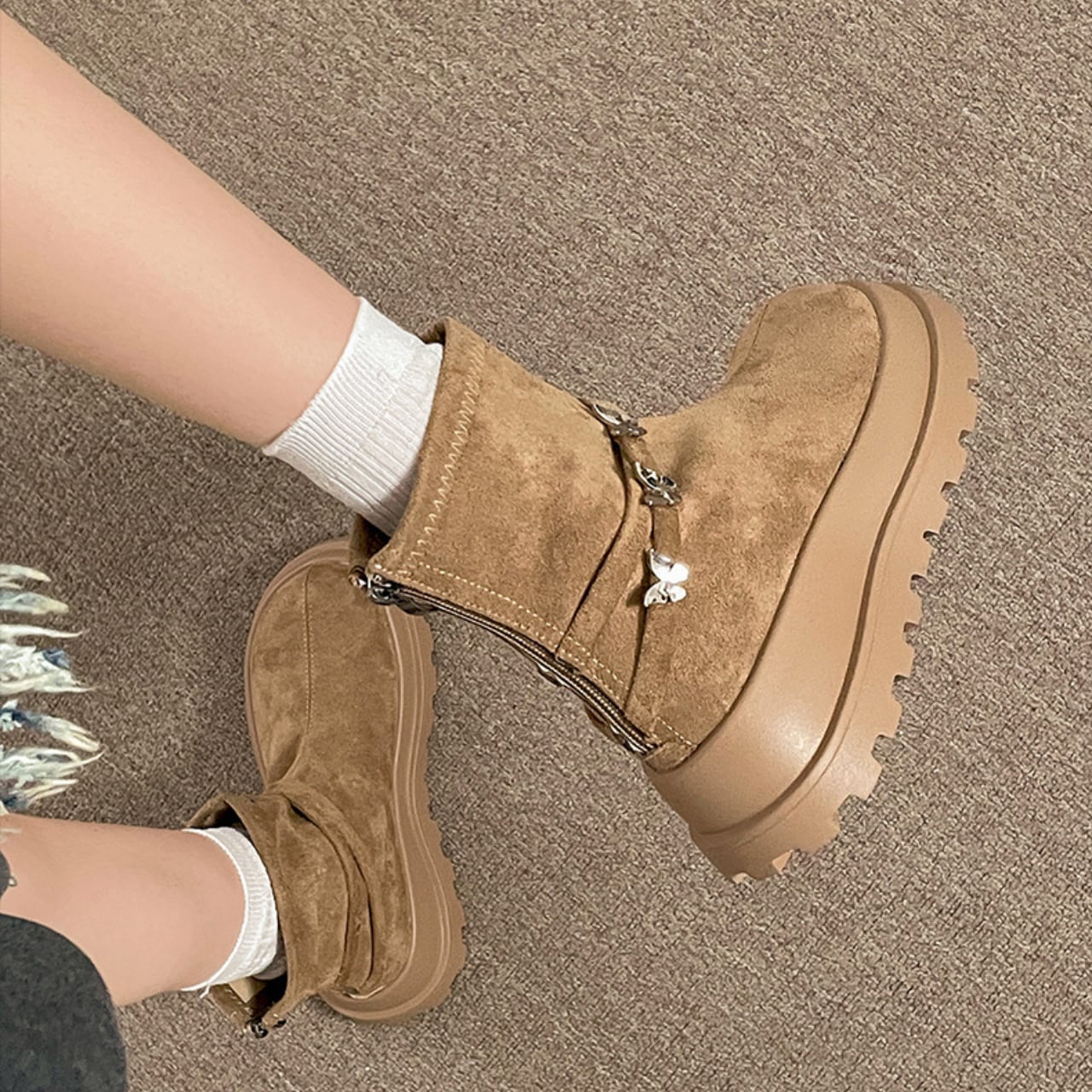 「レディース ブーツ ショートブーツ マーティンブーツ 厚底」は、あなたのスタイルに新しい魅力をプラスする一足です!上品でありながらカジュアルな雰囲気を持ち、スウェードPU素材で作られたこのブーツは、デートやお出かけ、さらにはアウトドアイベントにもぴったりです。厚底とミディアムヒール設計でスタイルアップ効果も抜群!どんなシーンでも主役を張れる存在感を誇ります。