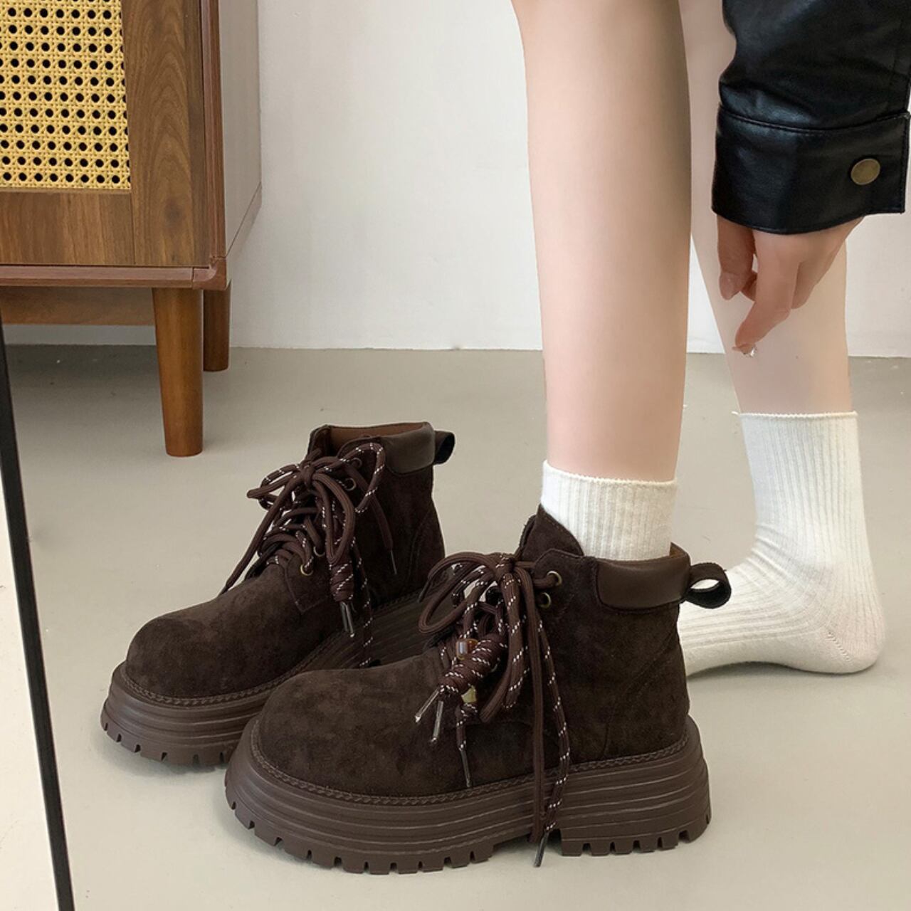 レディース ブーツ マーティンブーツ チャンキーヒール 厚底 ミディアムヒール 脚長 マイクロファイバー かわいい 大人可愛い きれいめ シンプル カジュアル おしゃれ かっこいい レトロ エレガント ガーリー 主役級 アジアン エスニック 華やか クラシック オールシーズン 無地 デート お出かけ アウトドア イベント リゾート 旅行 海外 公園 普段使い 韓国 コーデ スタイル 高見え 格上げ モテ 22.5cm 23.0cm 23.5cm 24.0cm 24.5cm 25.0cm ブラウン カーキ