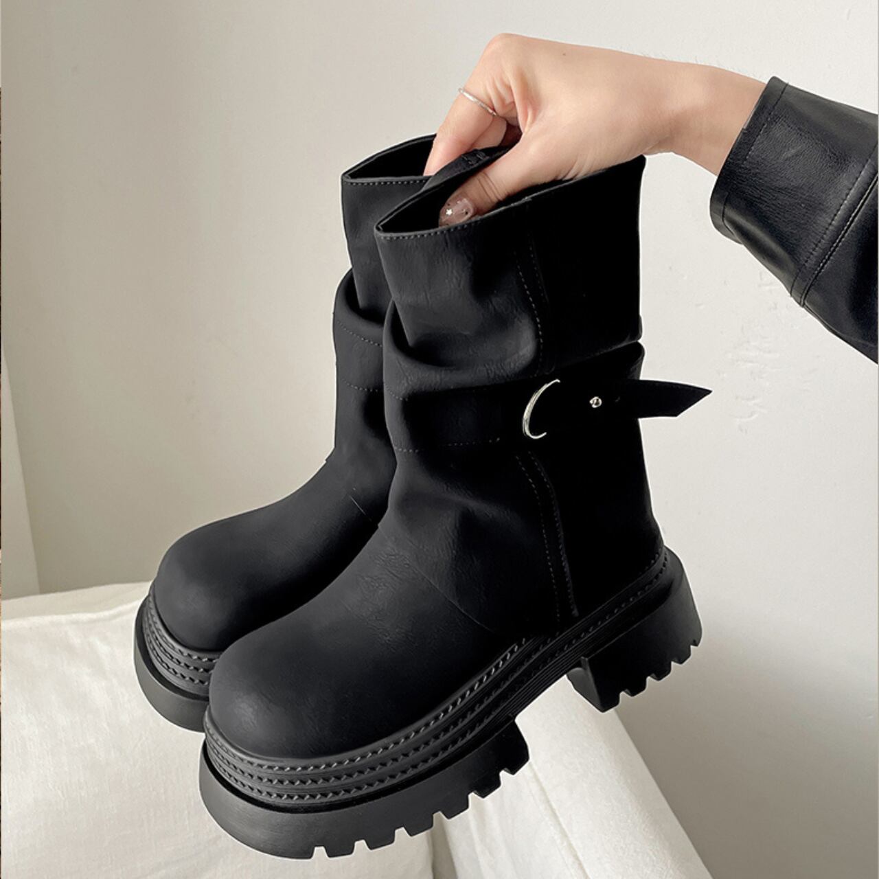 この「レディース ブーツ ショートブーツ マーティンブーツ ハイヒール チャンキーヒール」は、上品で華やかな魅力を持つ一足です!PU素材を使用し、柔らかな履き心地と美しいシルエットを実現しました。厚底とチャンキーヒールのデザインにより、脚長効果抜群で、デートやお出かけ、カジュアルな日常使いにも最適です。シンプルながらも大人可愛い雰囲気を醸し出し、どんなコーデにも合わせやすい主役級アイテムです!