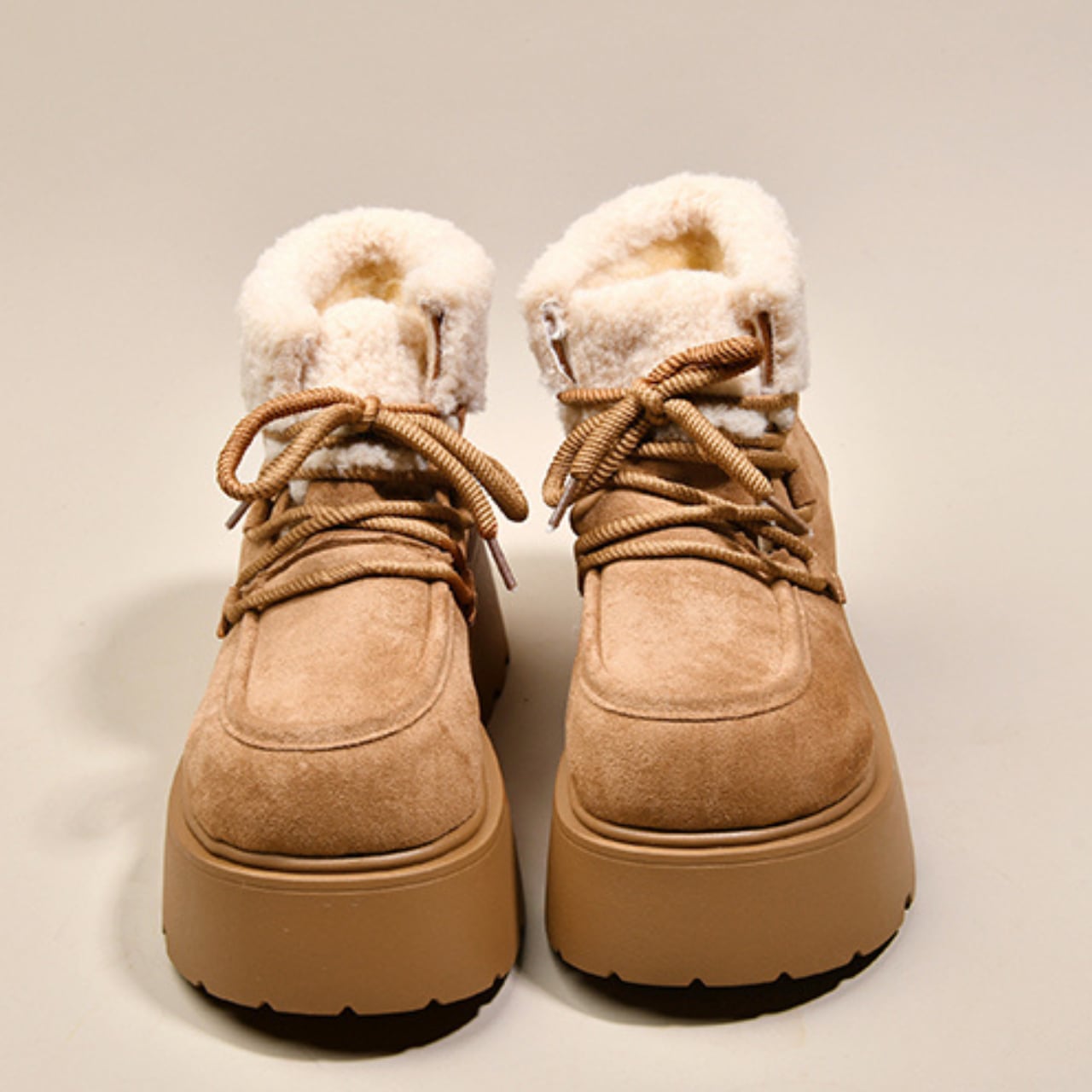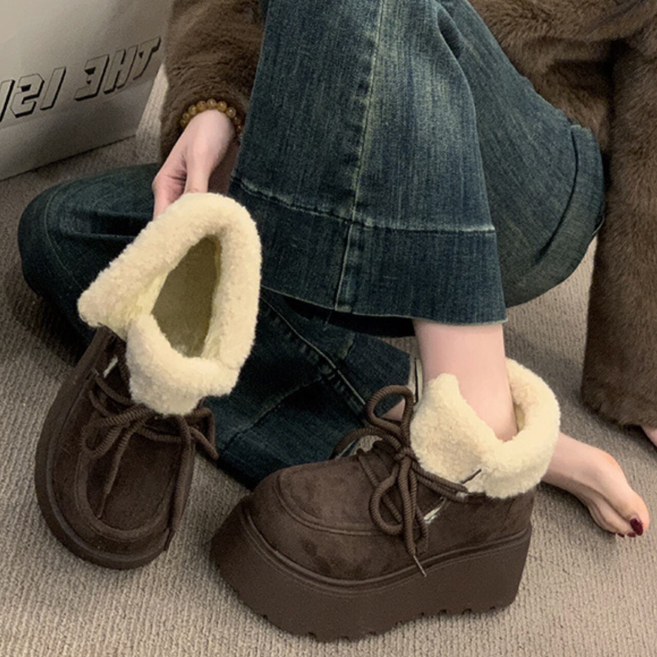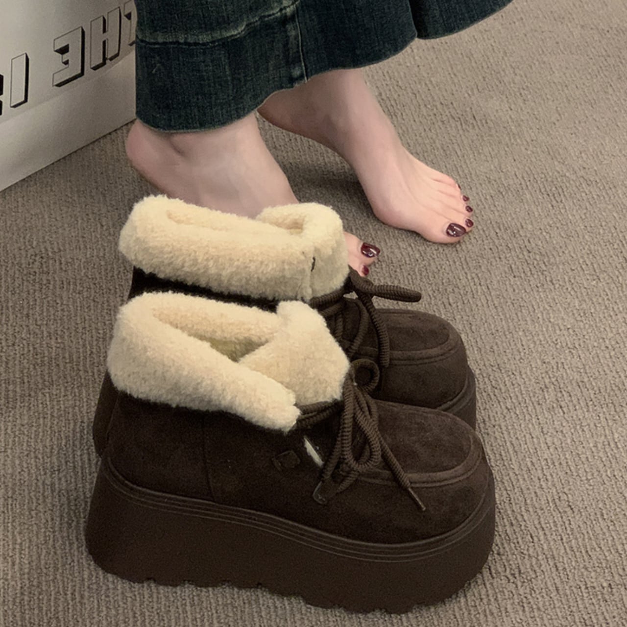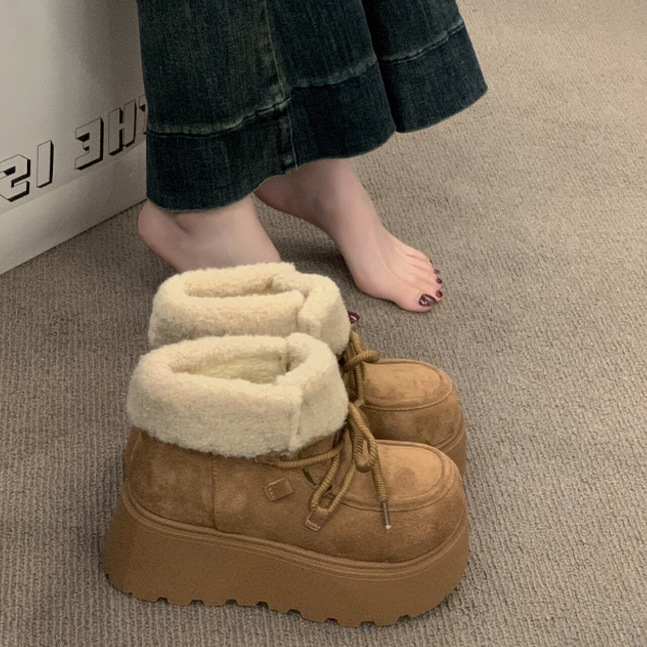寒い冬にぴったりな「レディース ブーツ ショートブーツ 厚底」!6.5cmの厚底で、もこもこふわふわの柔らかいスウェード素材が、抜群の防寒性とともに足を優しく包み込みます。シンプルながらも上品で、カジュアルからきれいめスタイルまで幅広く活躍するデザイン。通学やデート、お出かけ、アウトドアのシーンでも、あなたのファッションをぐっと引き立ててくれるアイテムです!大人可愛い印象を与えるキャメルとコーヒーの2色展開。ぜひお気に入りのコーディネートに合わせてみてください。