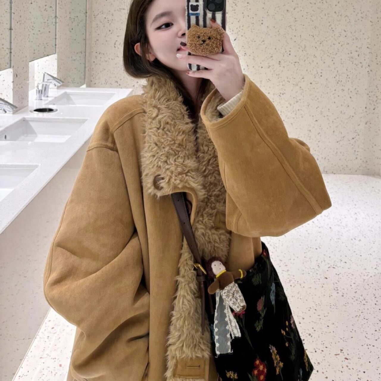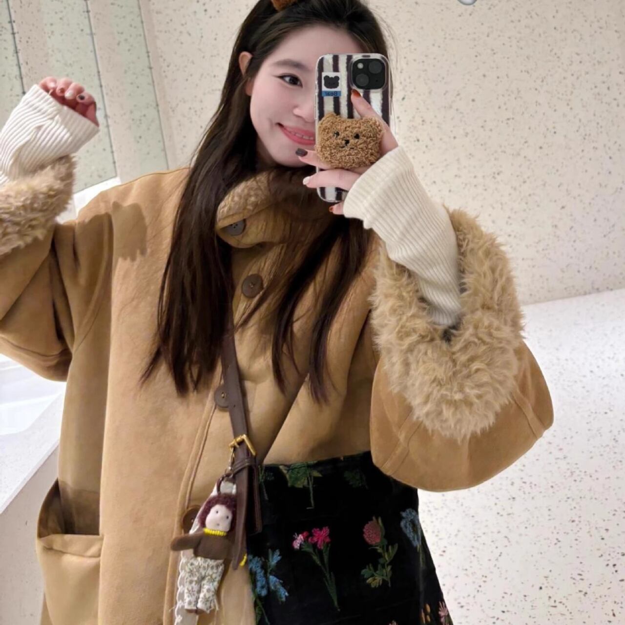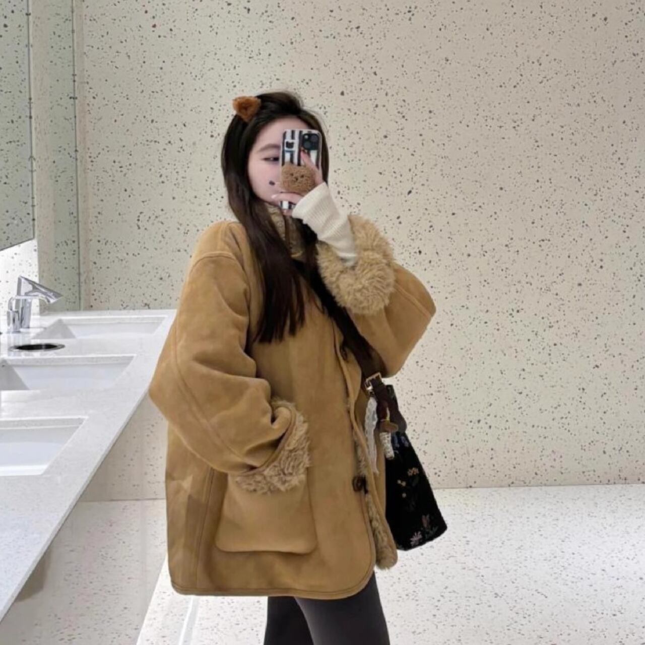 高品質で温かみのあるファーとスウェード素材を使用し、防寒もバッチリ。着心地も良く、普段使いから特別な日まで幅広くご利用いただけます。特に、韓国コーデとの相性も抜群で、インスタ映えすること間違いなしです!