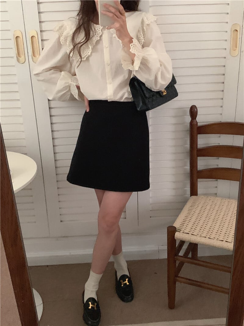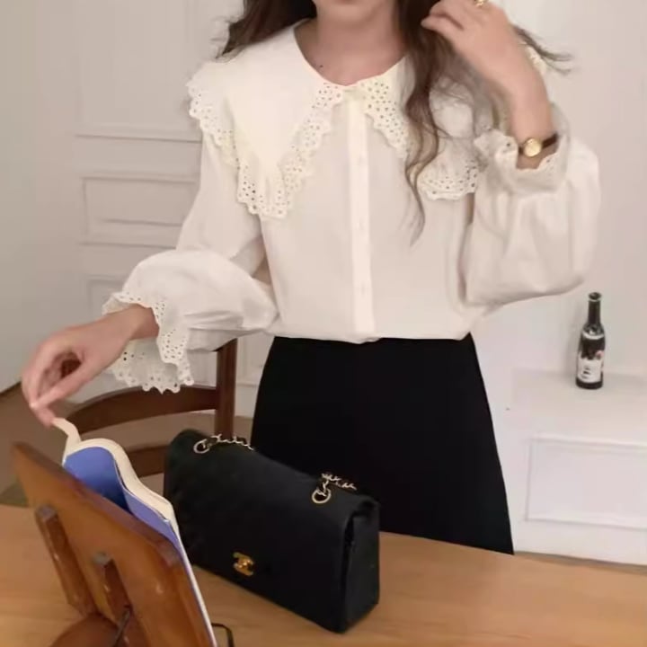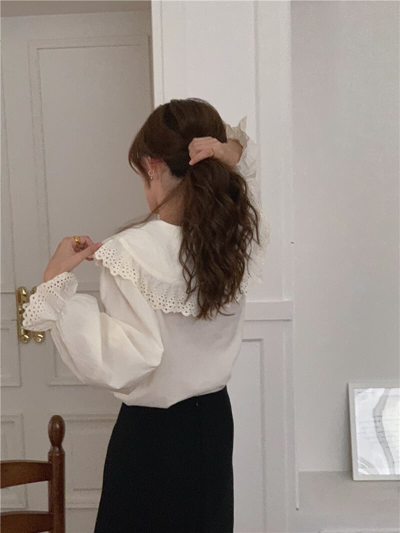 シャツ ブラウス バルーン袖 襟付き セーラーカラー レース フリル レディース トップス 前開き 長袖 ボリューム袖 フレア セミフレア フェミニン かわいい シンプル カジュアル 上品 レトロ こなれ感 ガーリー 個性的 主役級 存在感 ラブリー キュート ロリータ ロマンティック 春 秋 冬 クリスマス バレンタイン 学生 学校 デート お出かけ イベント 旅行 レストラン 女子会 休日 ホテル ガーデン ショッピング ライブ 合コン 重ね着 韓国 オルチャン 普段使い 着回し モテ トレンド