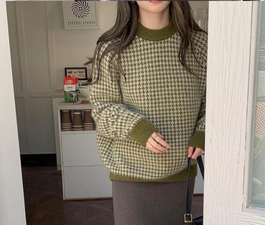 普通丈のデザインとクルーネック、長袖で、これからの秋冬シーズンにぴったり!