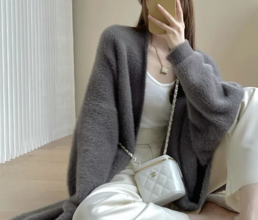 伸縮性があり、ラフに羽織るだけで大人可愛い印象に仕上がります。