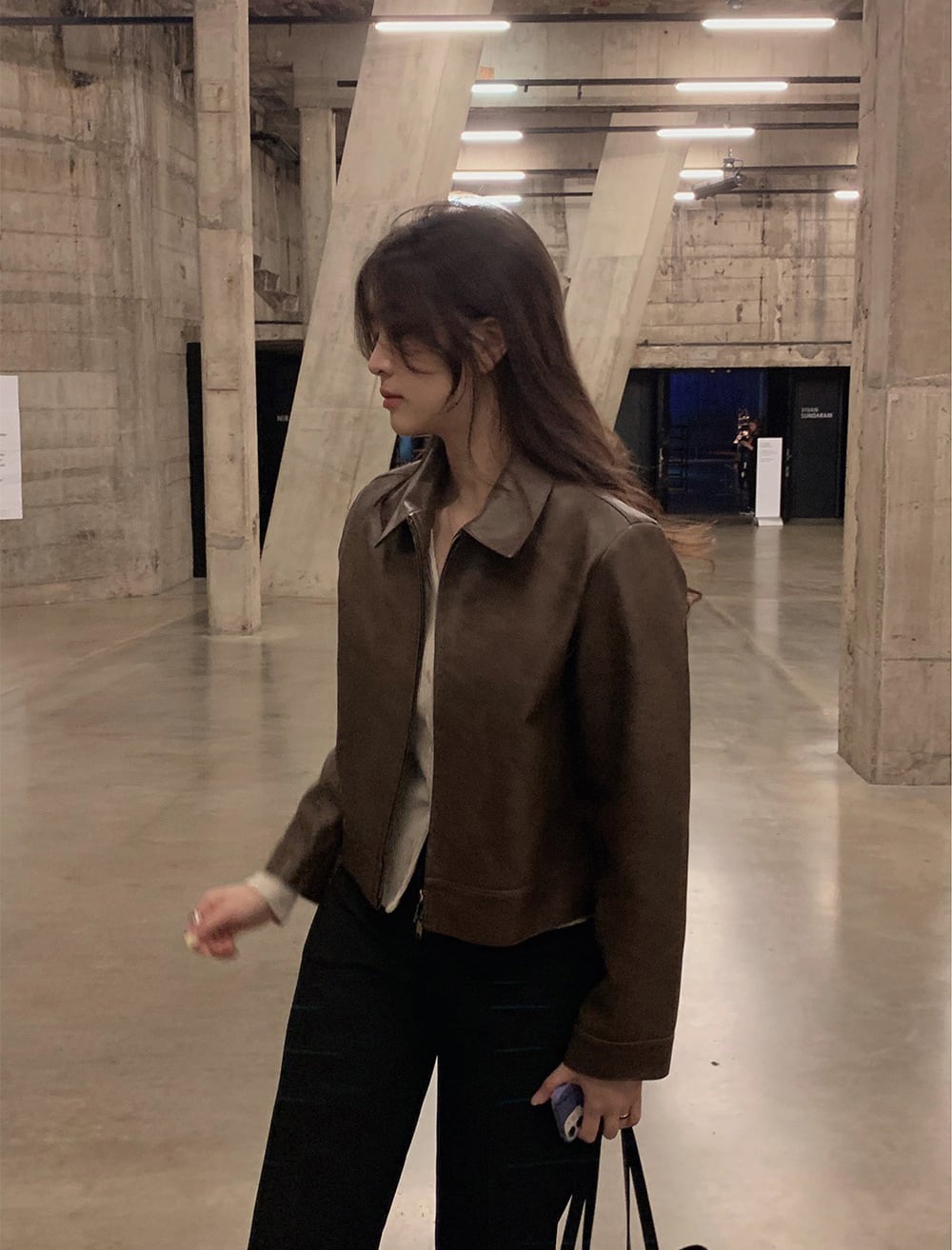 アウター ジャケット レザージャケット 長袖 襟付き 前開き ファスナー ショート丈 フェイクレザー かわいい 大人可愛い きれいめ シンプル 上品 おしゃれ かっこいい カジュアル こなれ感 個性的 主役級 存在感 抜け感 春 秋 ベーシック ナチュラル キュート クール 無地 女性用 レディース ママ OL 通勤 オフィス 学生 通学 デート お出かけ お泊まり 女子会 旅行 休日 アウトドア カフェ ショッピング コンパ レストラン イベント 普段使い デイリー 着回し ワンサイズ トレンド
