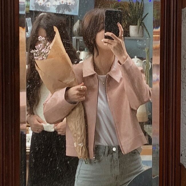 長袖で襟付き、前開きのファスナーデザインが上品な印象を与え、ショート丈がスタイルをすっきり見せてくれます。