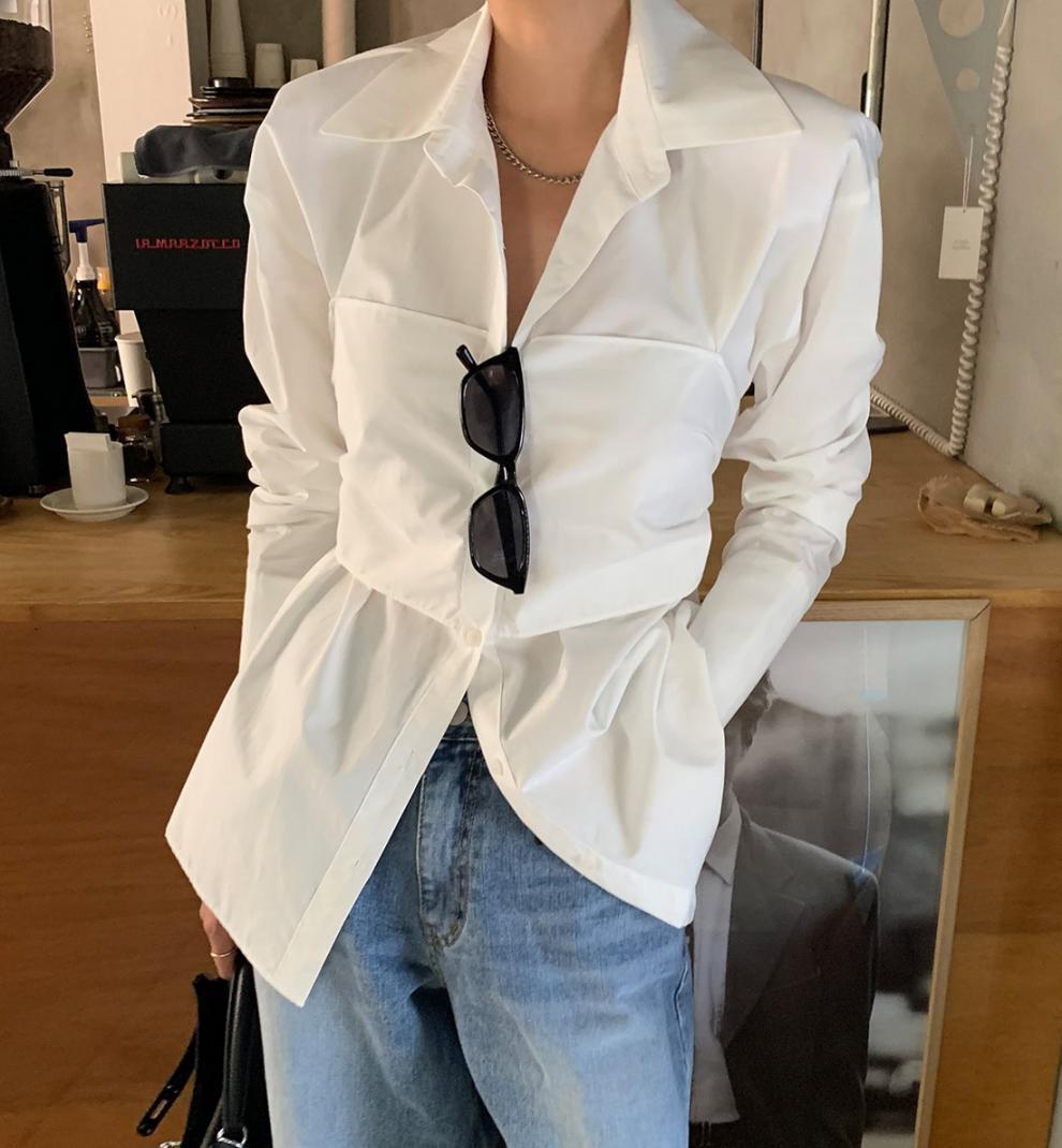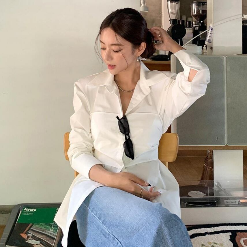 トップス シャツ ブラウス 長袖 襟付き 前開き ボタン 重ね着風 バックリボン ミディアム丈 かわいい 大人可愛い きれいめ シンプル 上品 おしゃれ かっこいい カジュアル こなれ感 個性的 主役級 ルーズ 存在感 抜け感 春 夏 ベーシック ナチュラル キュート フェミニン クール 無地 女性用 レディース ママ OL 通勤 オフィス 学生 通学 デート お出かけ お泊まり 女子会 旅行 休日 アウトドア カフェ ショッピング コンパ レストラン イベント 普段使い デイリー 着回し ワンサイズ